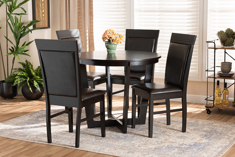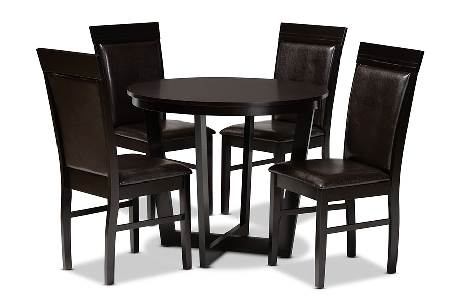 Baxton Studio Irma Modern and Contemporary Dark Brown Faux Leather Upholstered and Dark Brown Finished Wood 5-Piece Dining Set