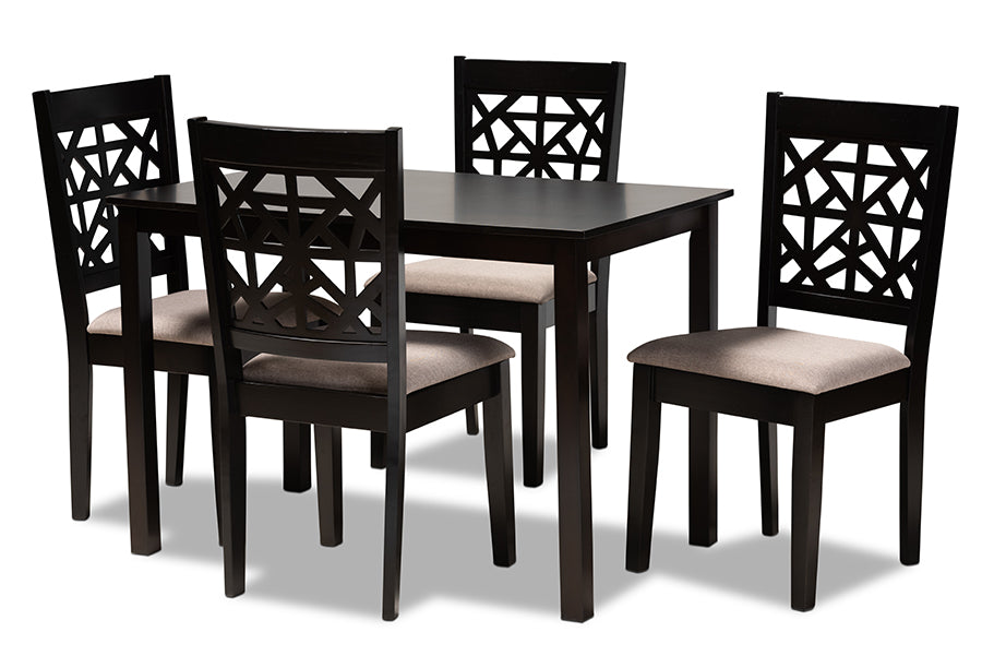 Baxton Studio Jackson Modern and Contemporary Sand Fabric Upholstered and Espresso Brown Finished Wood 5-Piece Dining Set