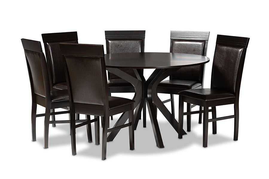 Baxton Studio Jeane Modern and Contemporary Dark Brown Faux Leather Upholstered and Dark Brown Finished Wood 7-Piece Dining Set