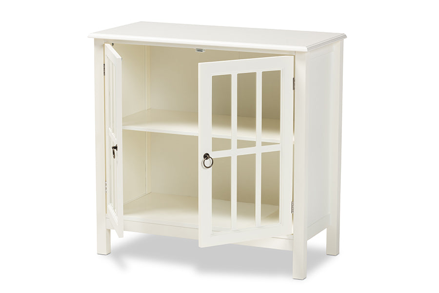 Baxton Studio Kendall Classic and Traditional White Finished Wood and Glass Kitchen Storage Cabinet