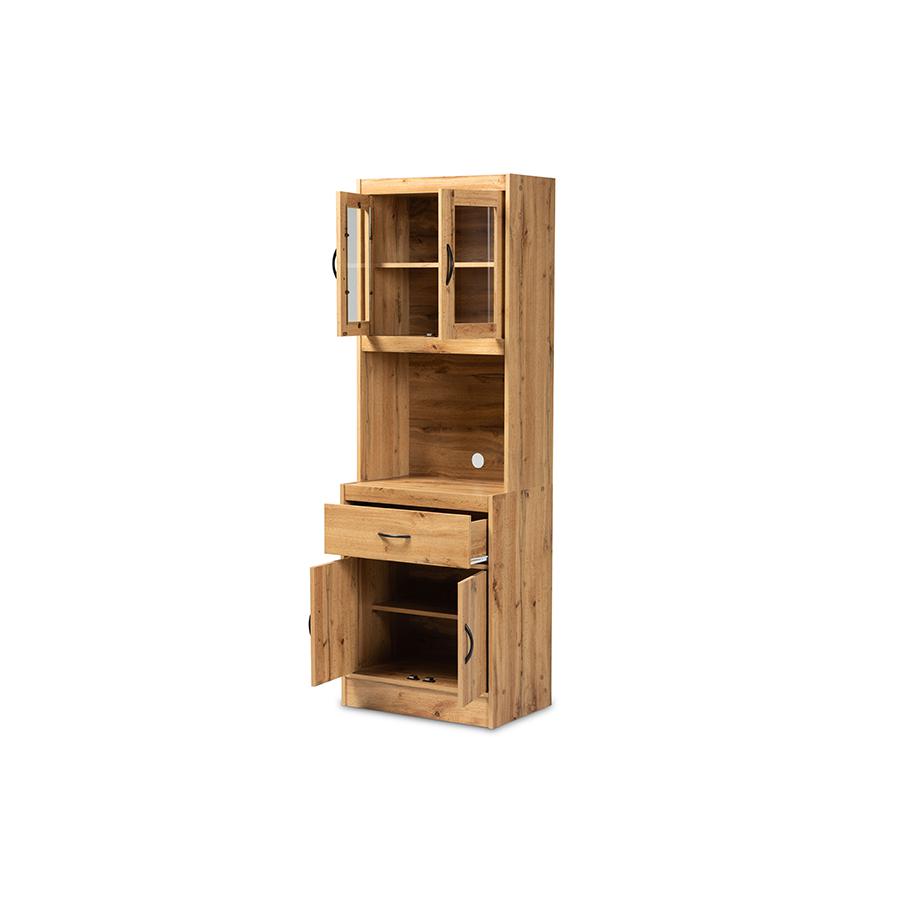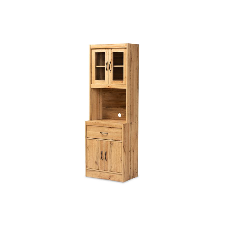 Baxton Studio Laurana Modern and Contemporary Oak Brown Finished Wood Kitchen Cabinet and Hutch