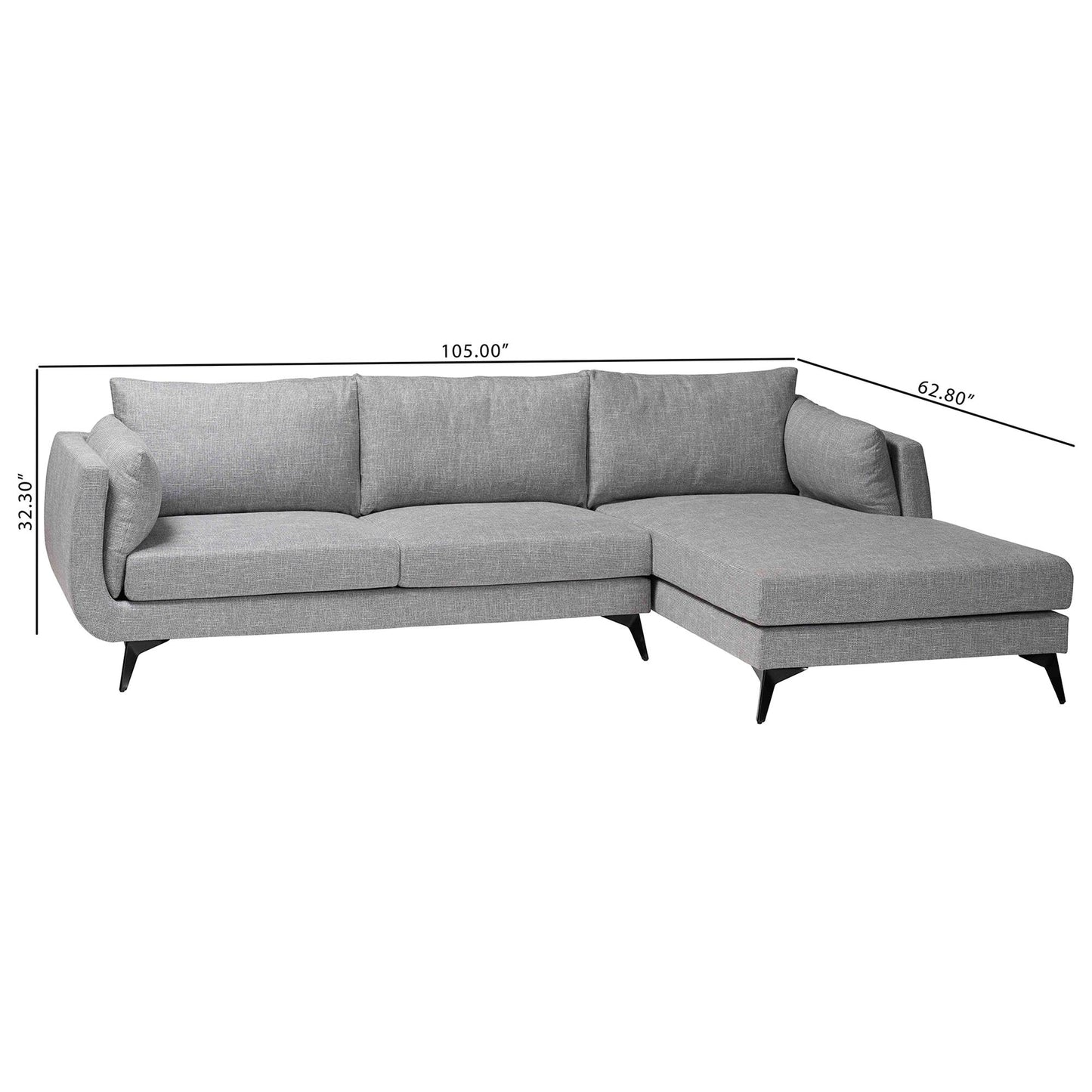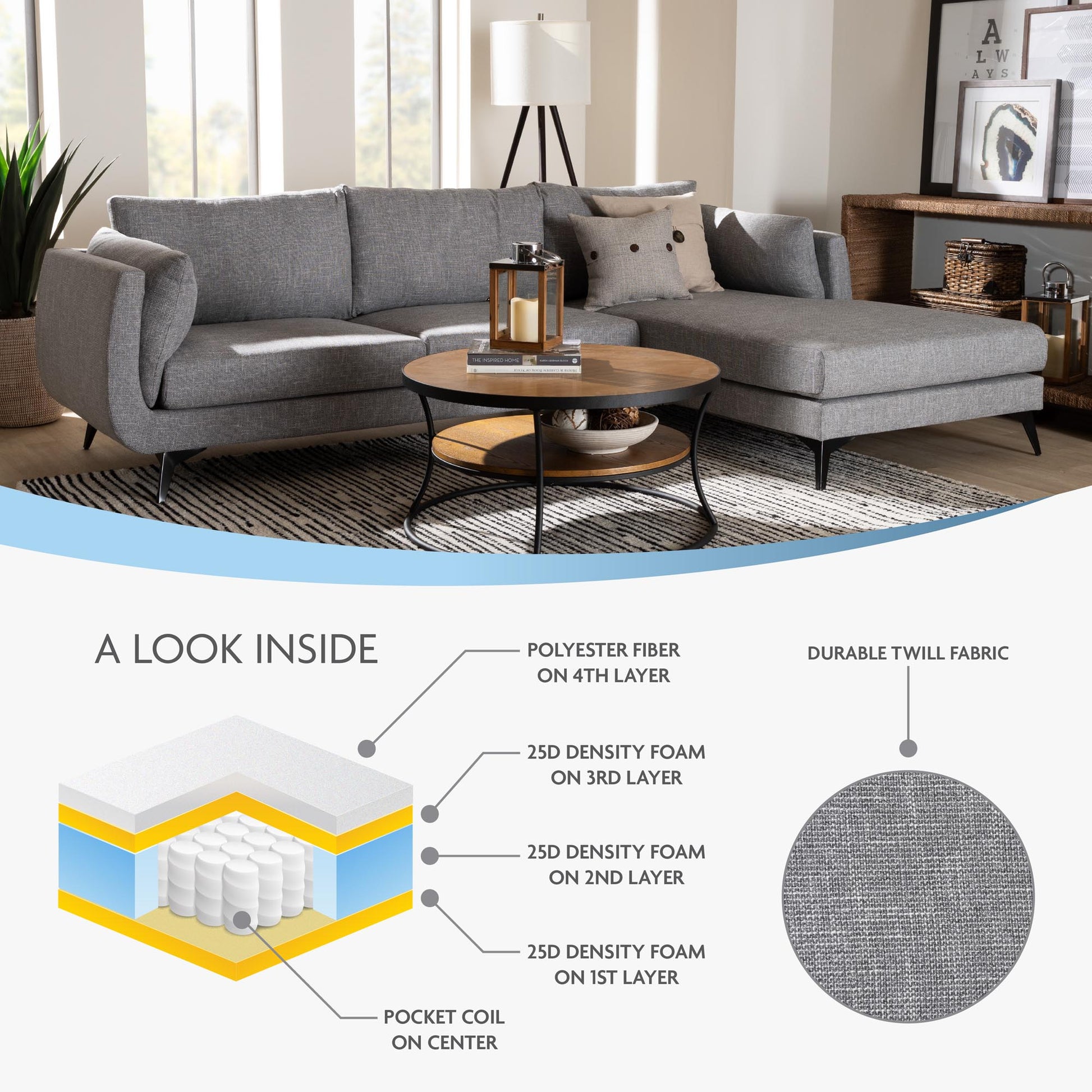 Baxton Studio Leni Modern Grey Twill Fabric Right Facing Sectional Sofa