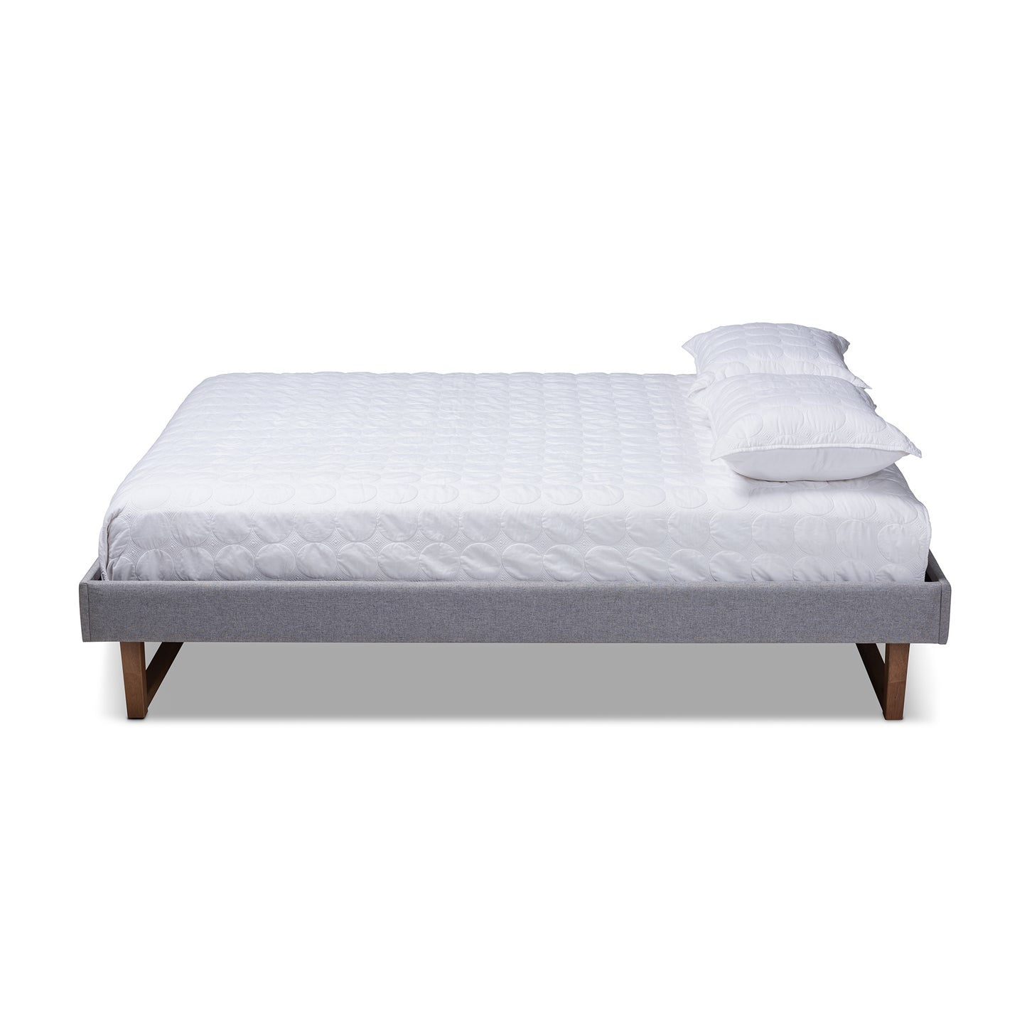 Baxton Studio Liliya Mid-Century Modern Light Grey Fabric Upholstered Walnut Brown Finished Wood King Size Platform Bed Frame