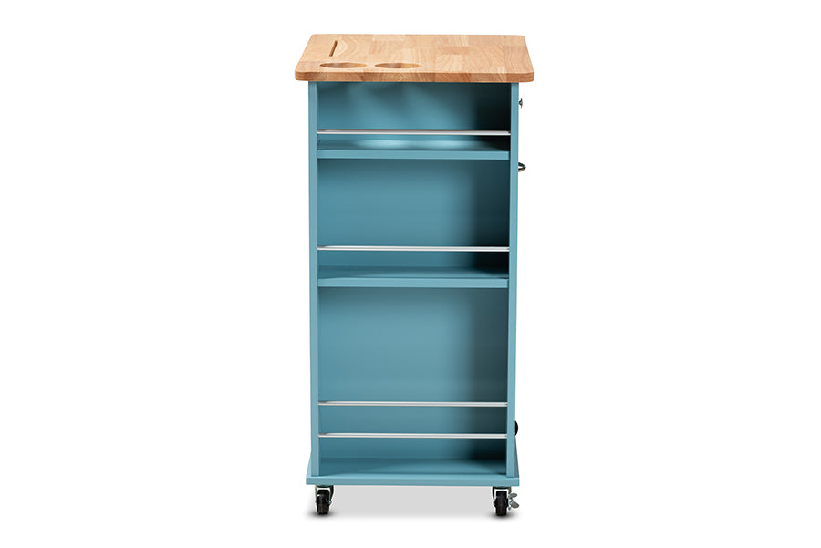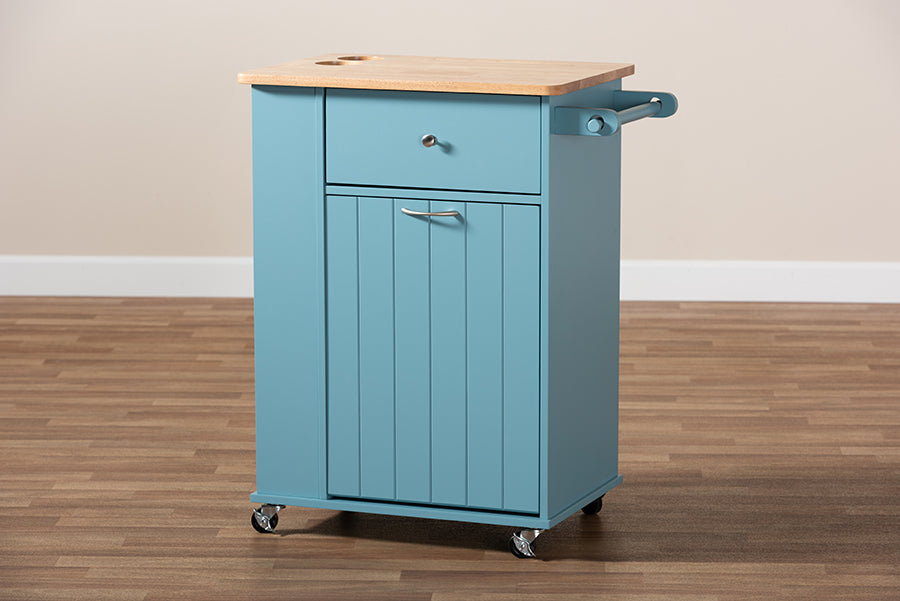 Baxton Studio Liona Modern and Contemporary Sky Blue Finished Wood Kitchen Storage Cart