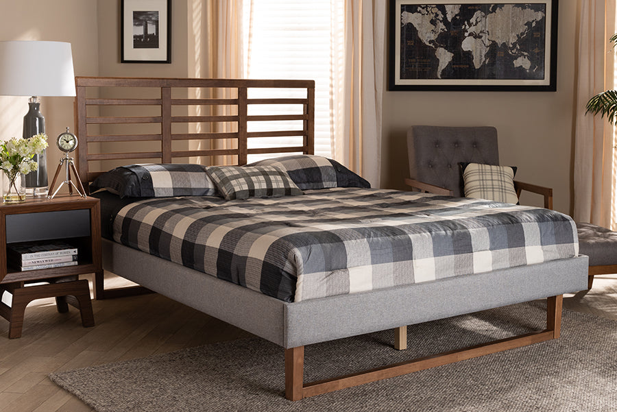 Baxton Studio Luciana Modern and Contemporary Light Grey Fabric Upholstered and Ash Walnut Brown Finished Wood Queen Size Platform Bed