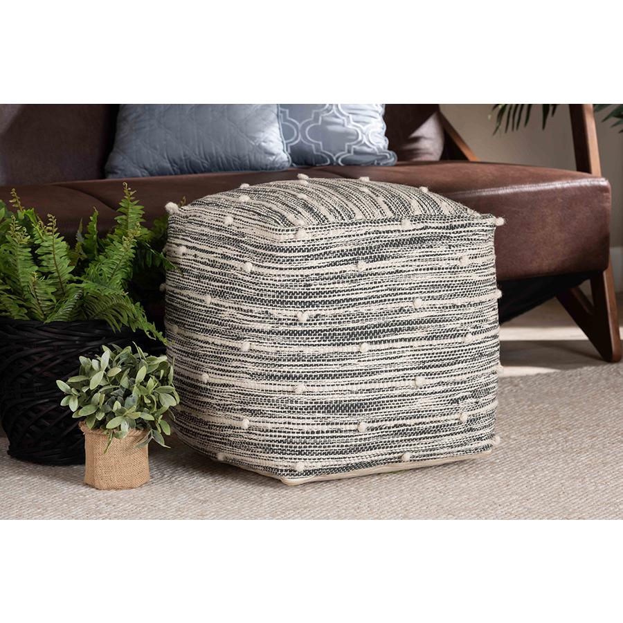 Baxton Studio Macaco Modern and Contemporary Moroccan Inspired Dark Grey and Ivory Handwoven Cotton Blend Pouf Ottoman