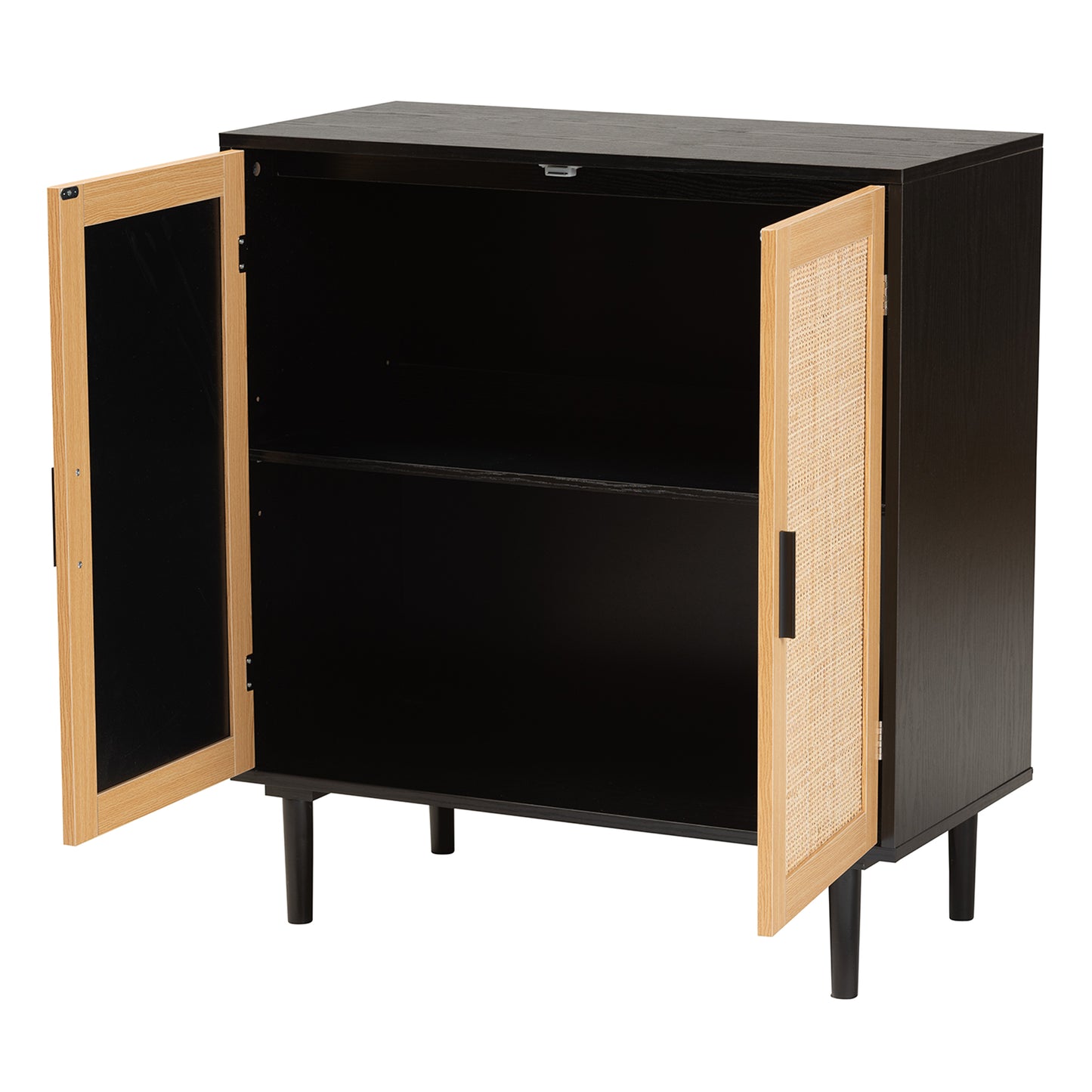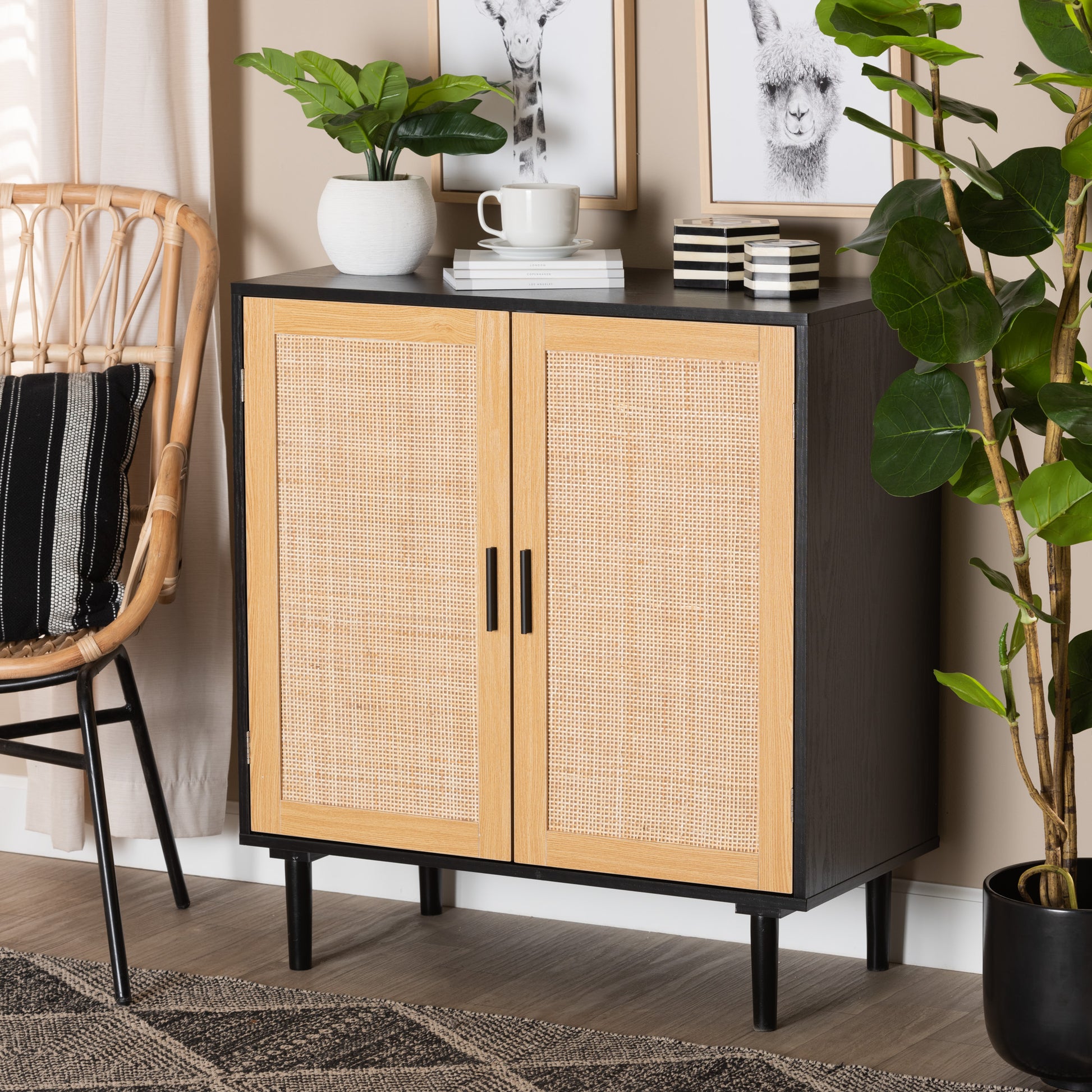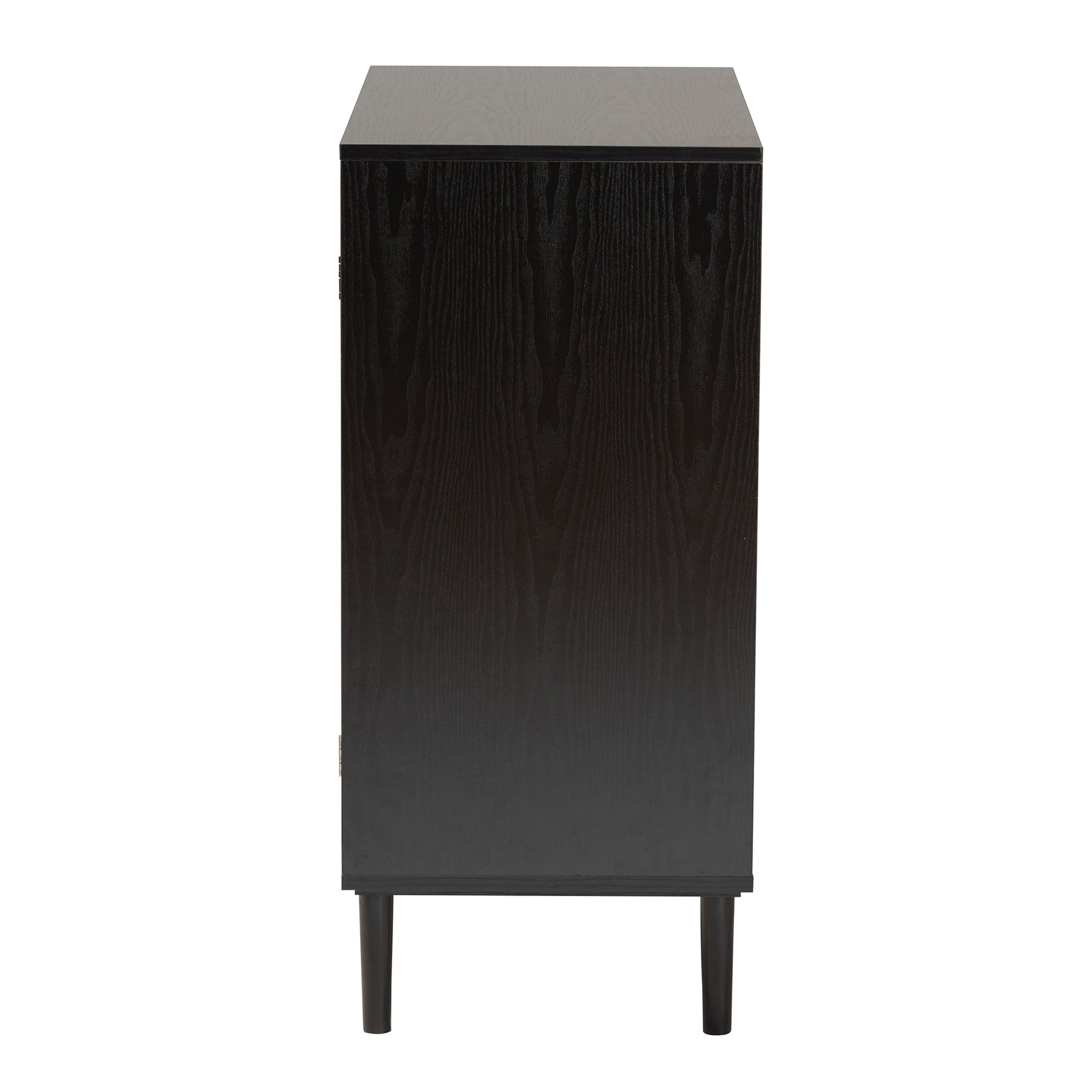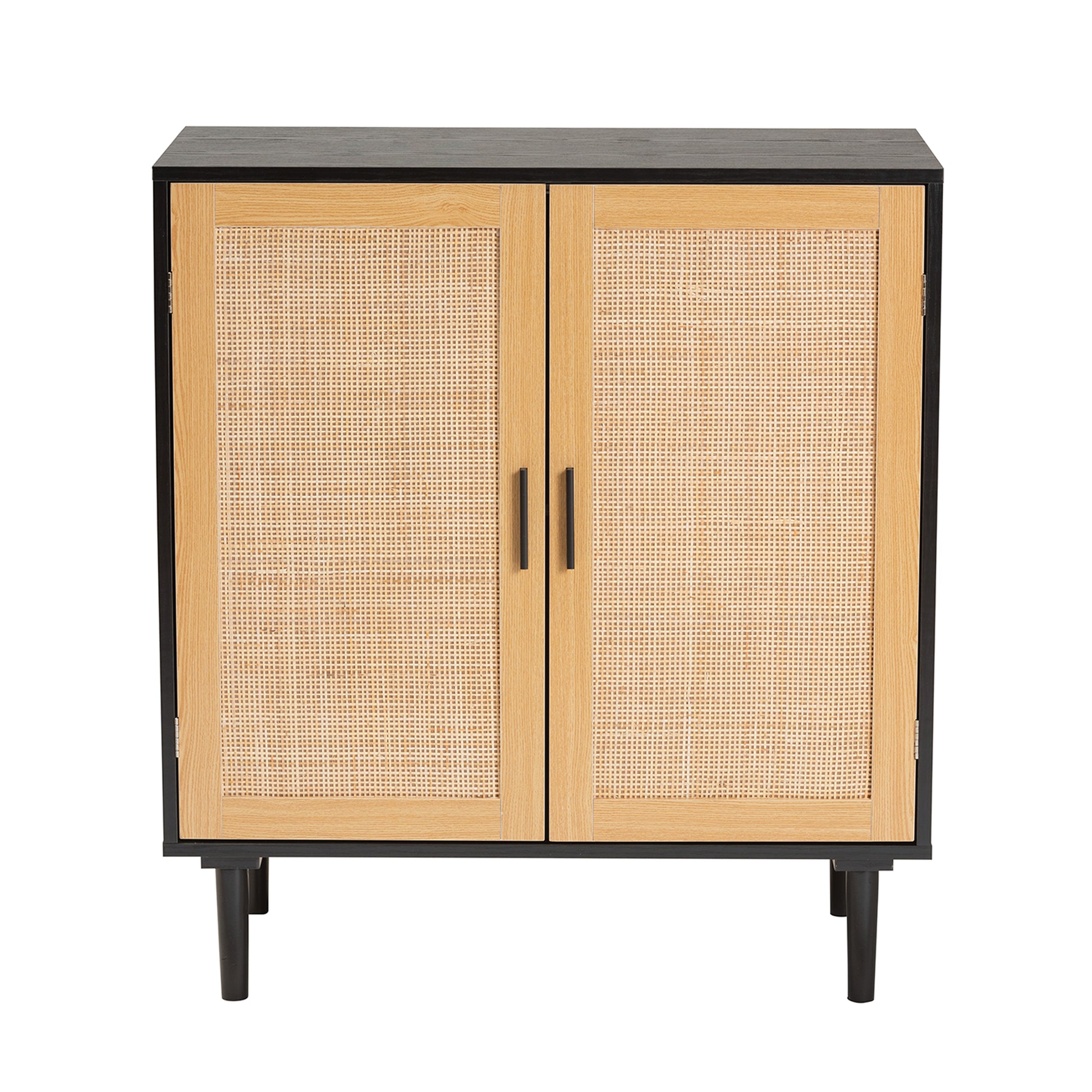 Baxton Studio Maureen Mid-Century Modern Espresso Brown Wood and Rattan 2-Door Storage Cabinet