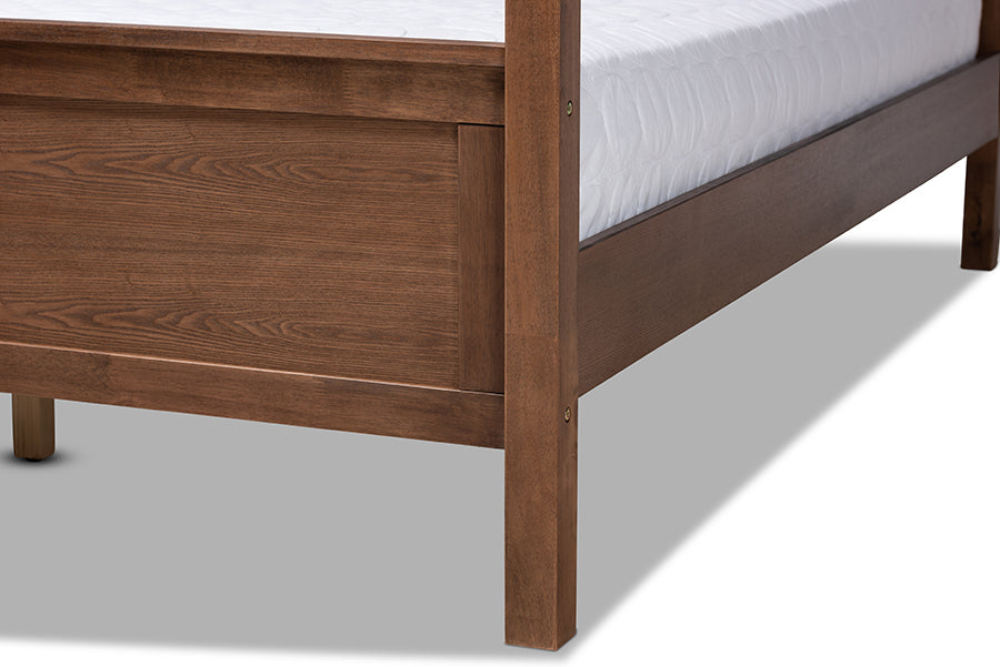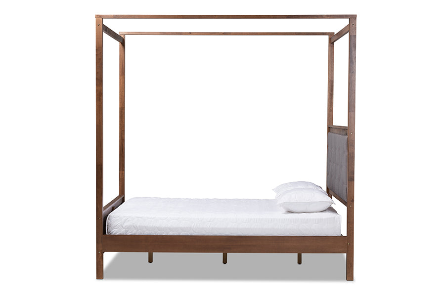 Baxton Studio Natasha Modern and Contemporary Grey Fabric Upholstered and Walnut Brown Finished Wood Queen Size Platform Canopy Bed