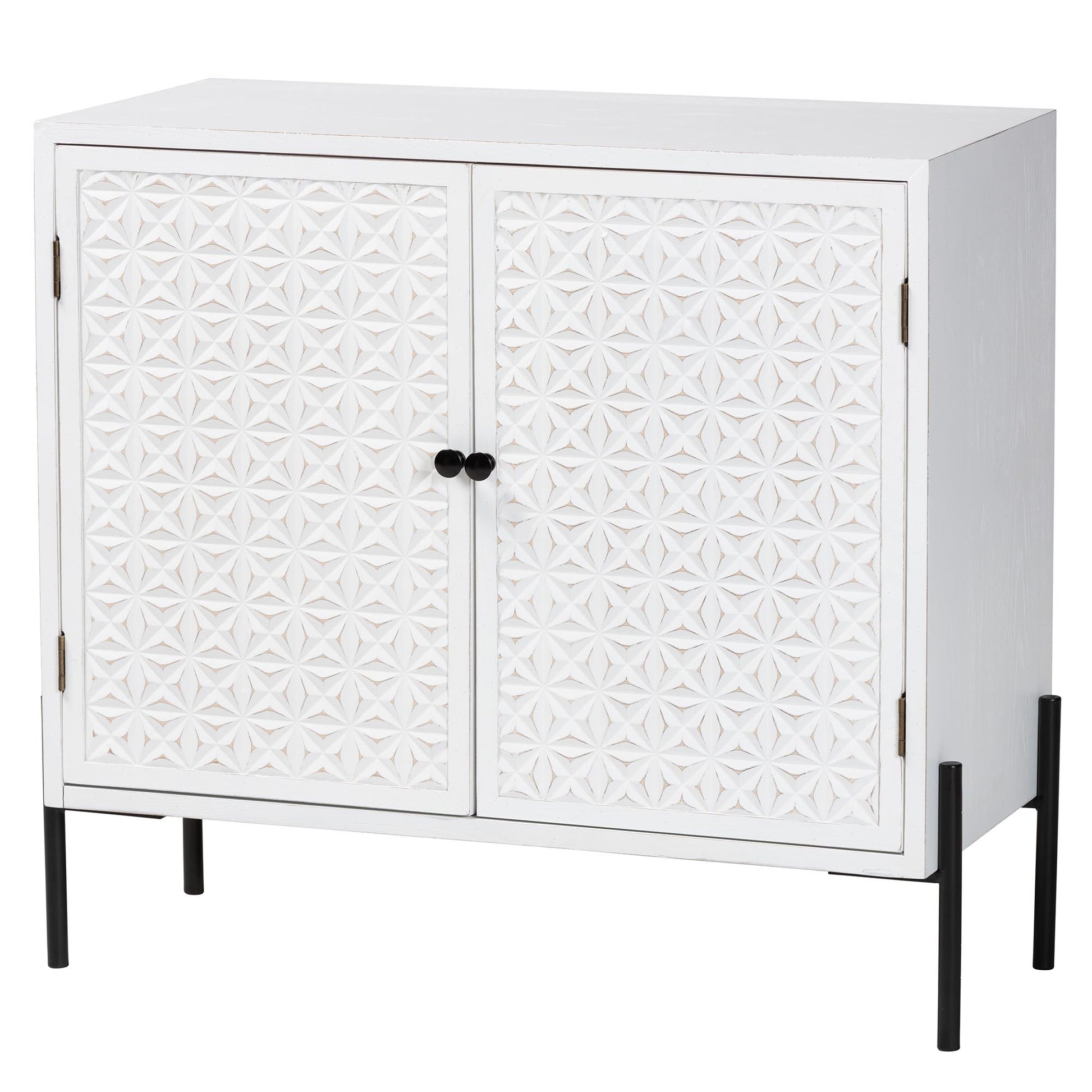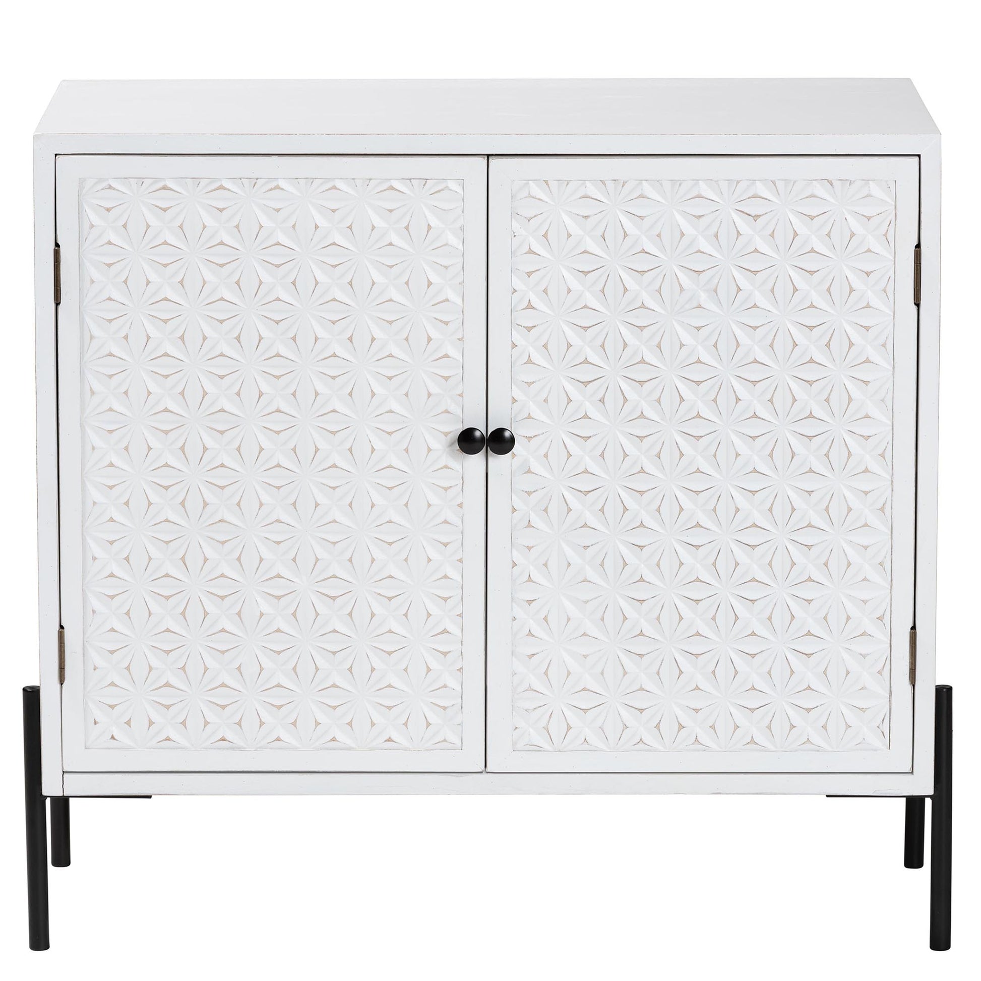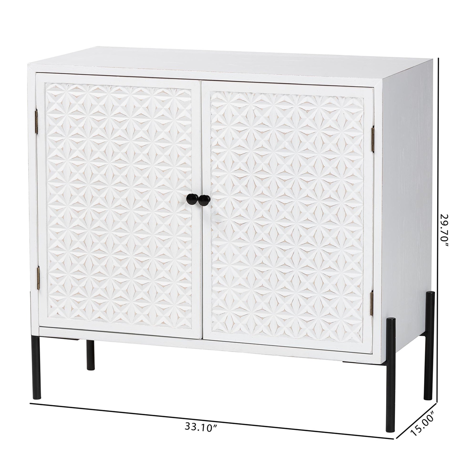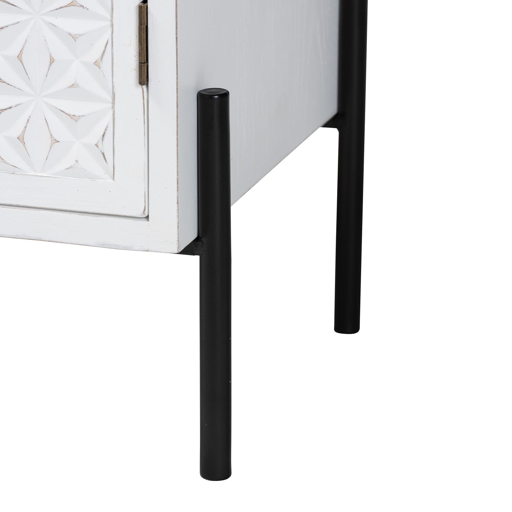 Baxton Studio Nefeli Mid-Century Transitional White Finished Wood and Black Metal 2-Door Storage Cabinet