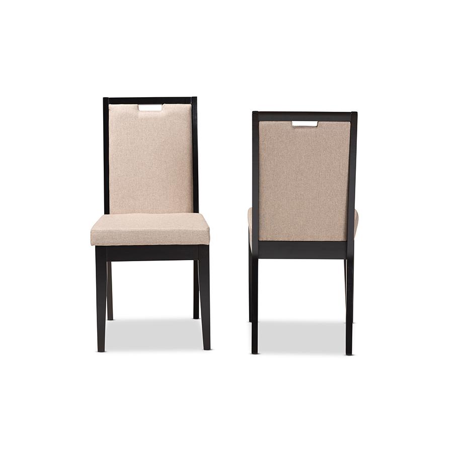 Baxton Studio Octavia Modern and Contemporary Sand Fabric Upholstered and Dark Brown Finished Wood 2-Piece Dining Chair Set