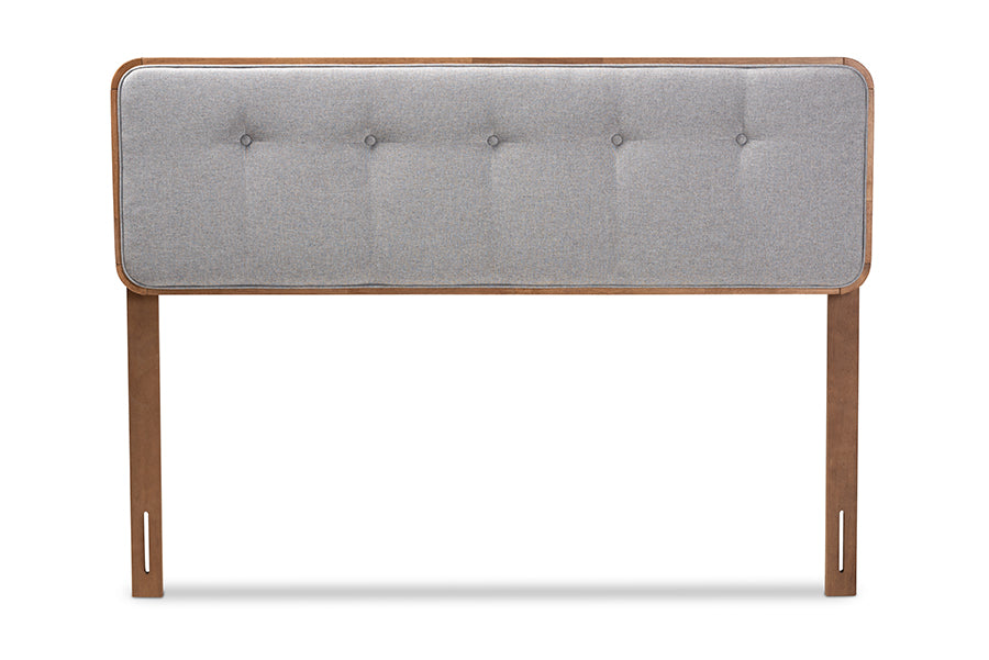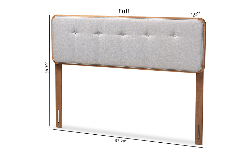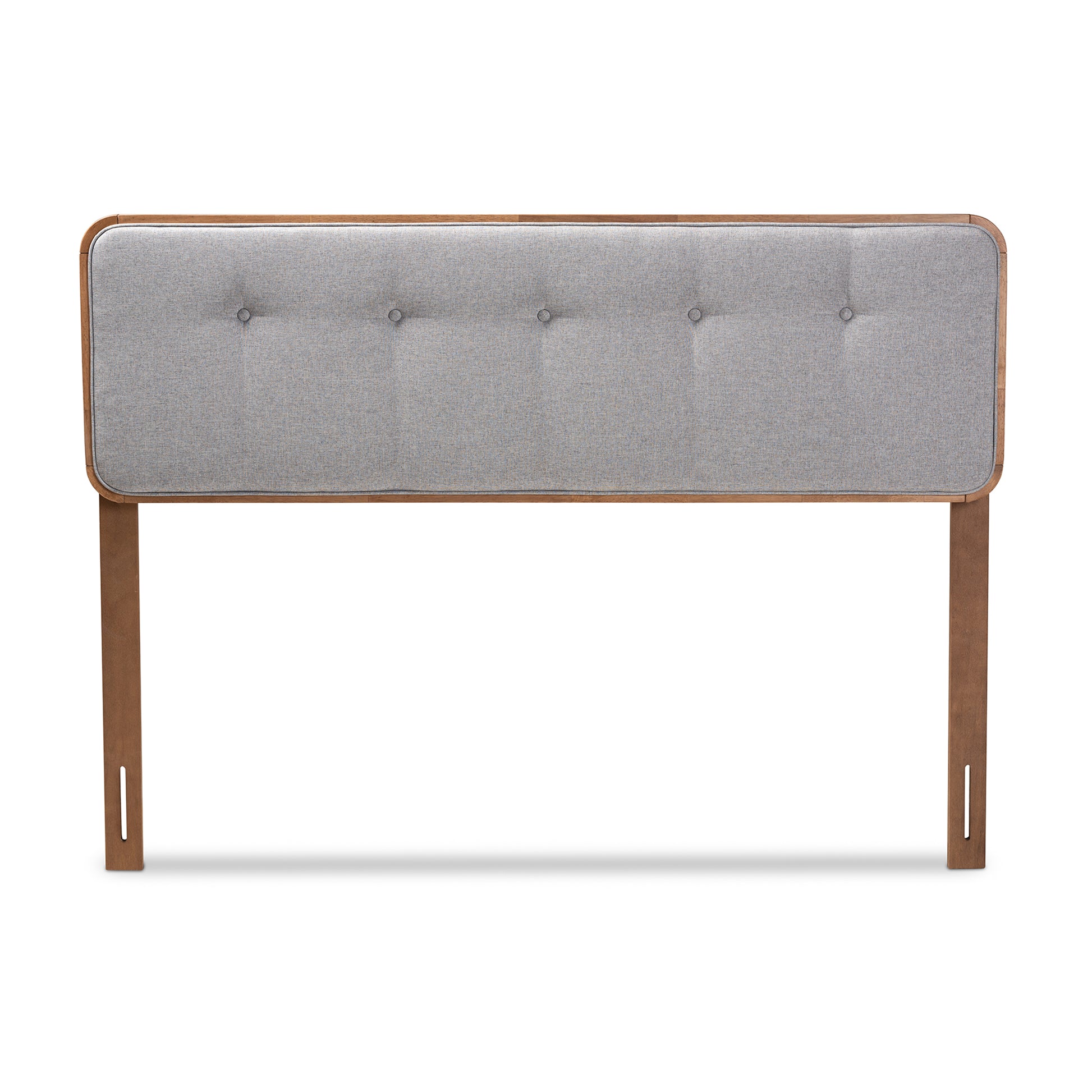 Baxton Studio Palina Mid-Century Modern Light Grey Fabric Upholstered Walnut Brown Finished Wood Full Size Headboard
