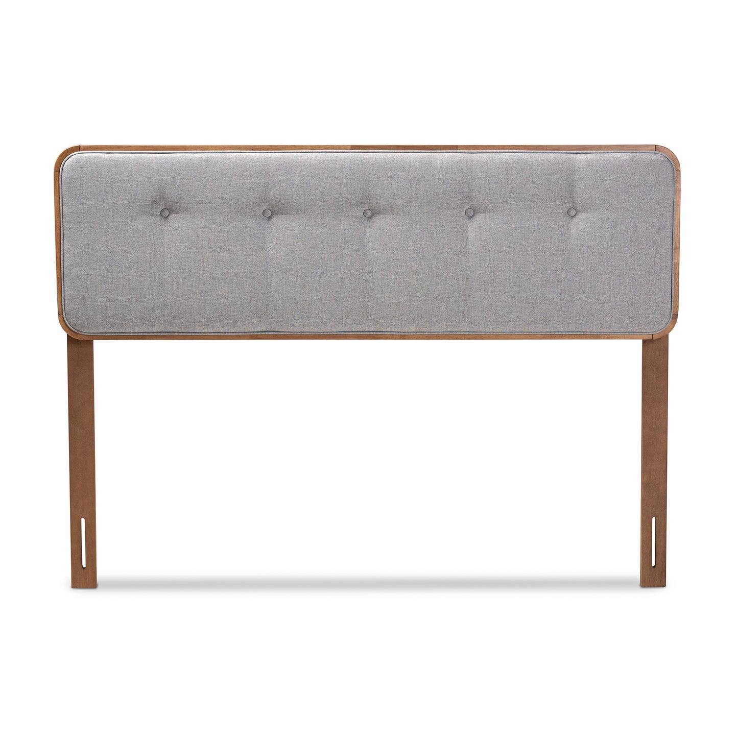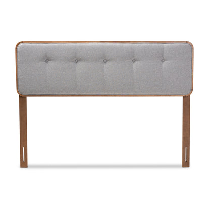 Baxton Studio Palina Mid-Century Modern Light Grey Fabric Upholstered Walnut Brown Finished Wood Queen Size Headboard