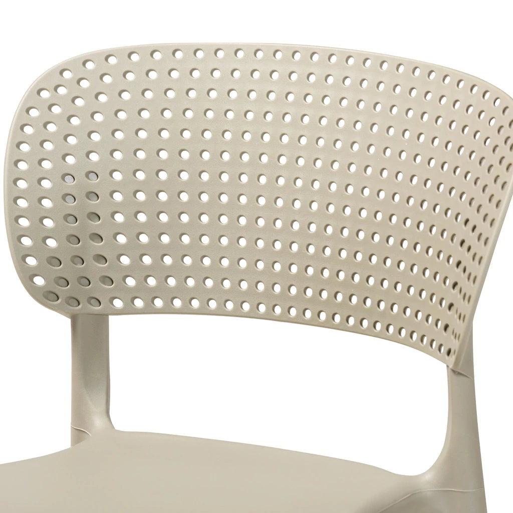Expand your dining routine with the flexible design of the Rae dining chair. Made in China, this chair is comprised of durable polypropylene plastic in a smooth, neutral finish. Its curved backrest features round cutouts for an airy look that allows light to flow more easily throughout the room. The Rae will arrive fully assembled and features a stackable design for easy organization and setup in any private or public setting. Perfect for both family dinners and casual snack sessions, the Rae dining chair is a versatile solution to your dining needs.