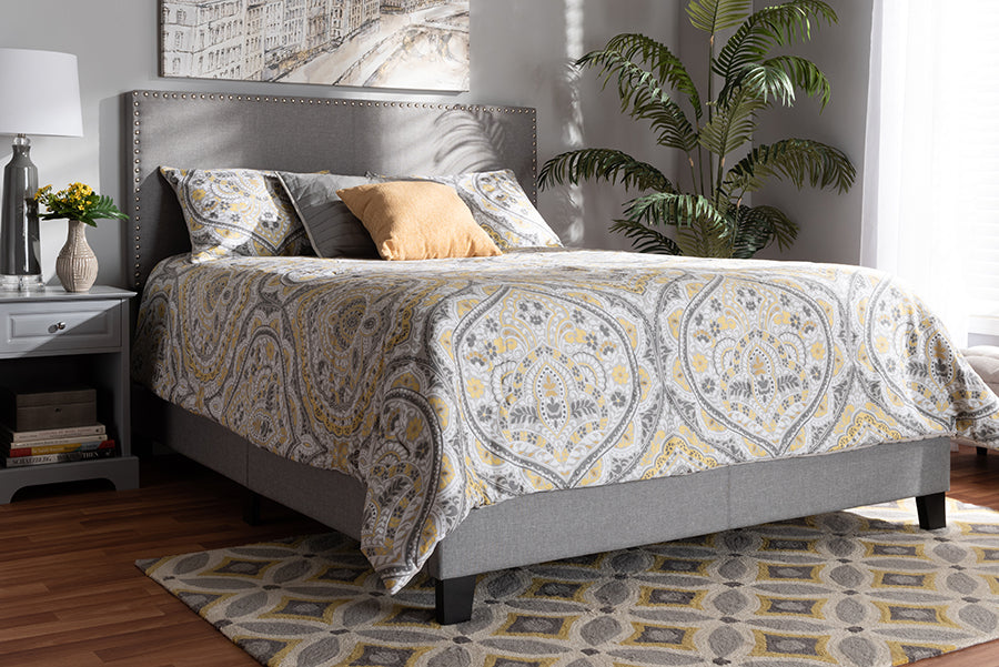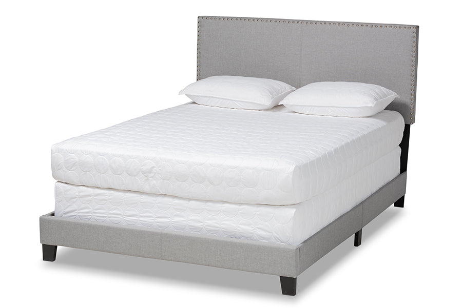 Baxton Studio Ramon Modern and Contemporary Grey Linen Fabric Upholstered Full Size Panel Bed with Nailhead Trim