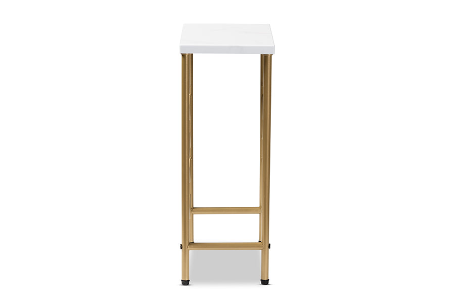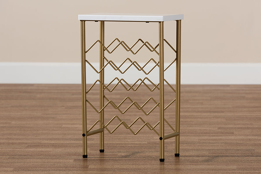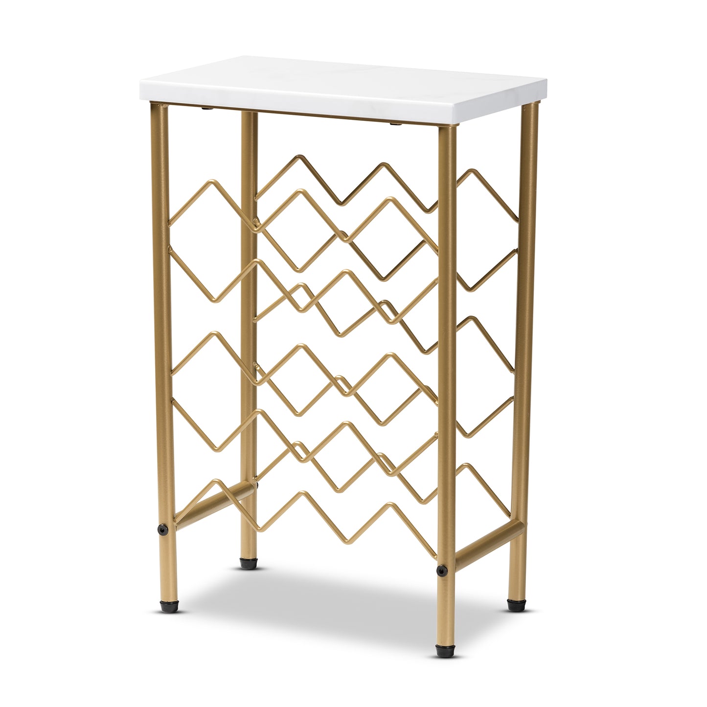 Baxton Studio Ramona Modern and Contemporary Gold Finished Metal Wine Rack With Faux Marble Tabletop