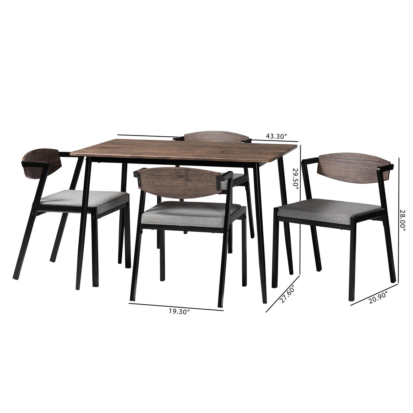 Baxton Studio Revelin Industrial Grey Fabric and Metal Dining Set