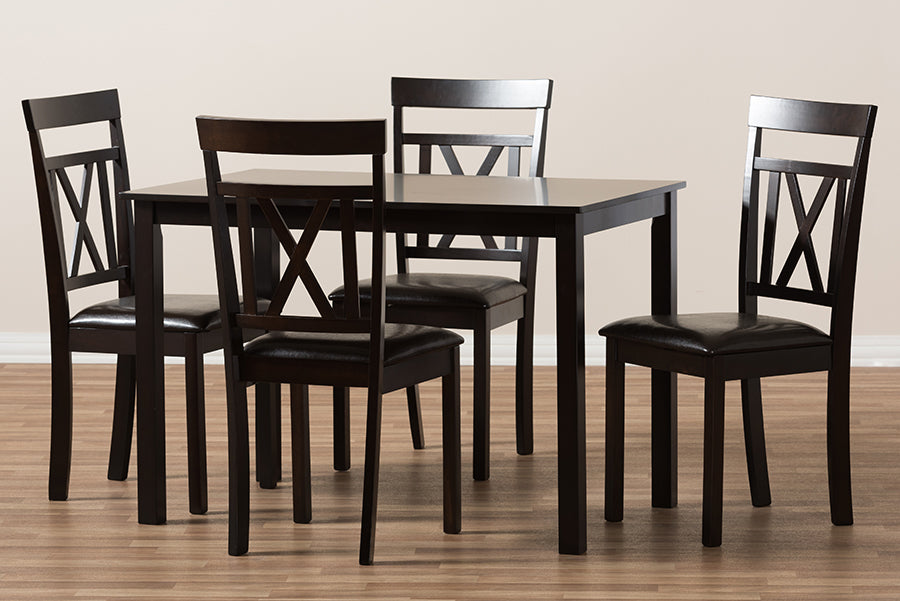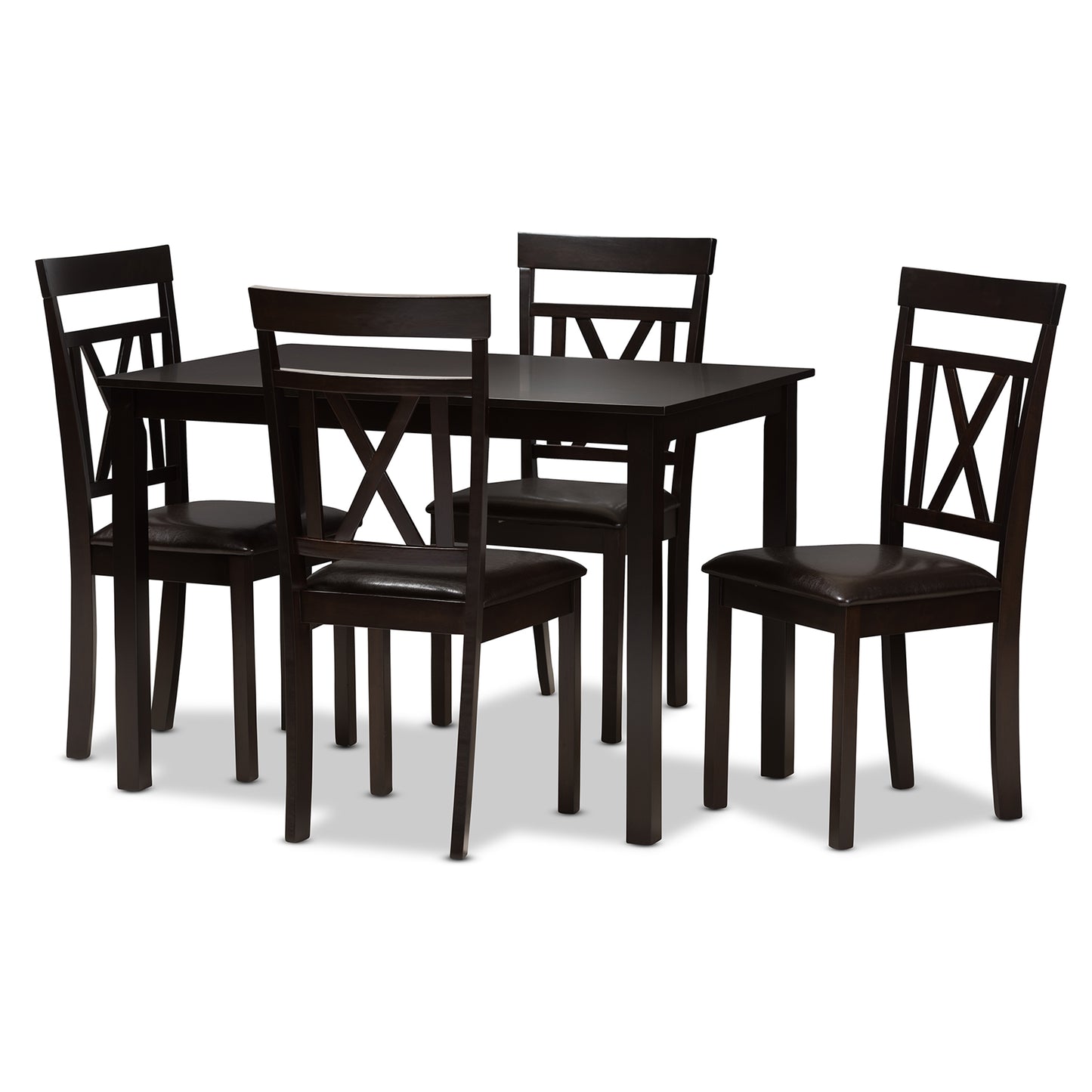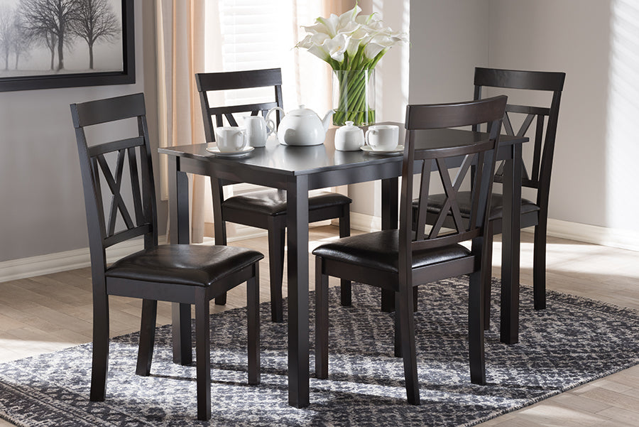 Baxton Studio Rosie Modern and Contemporary Dark Brown Faux Leather Upholstered 5-Piece Dining Set