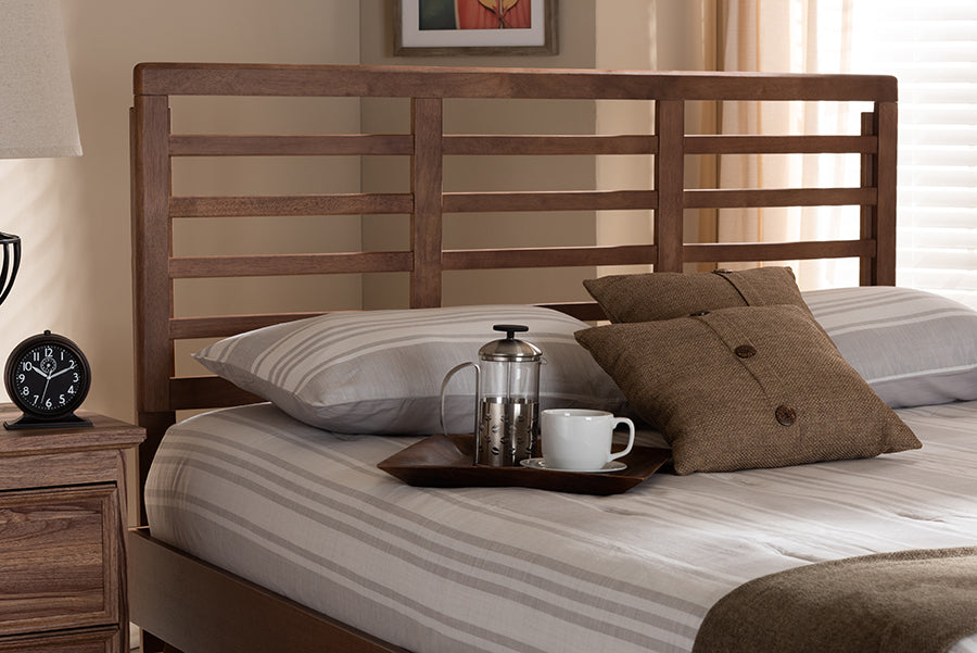Baxton Studio Salome Mid-Century Modern Walnut Brown Finished Wood Full Size Open Slat Headboard