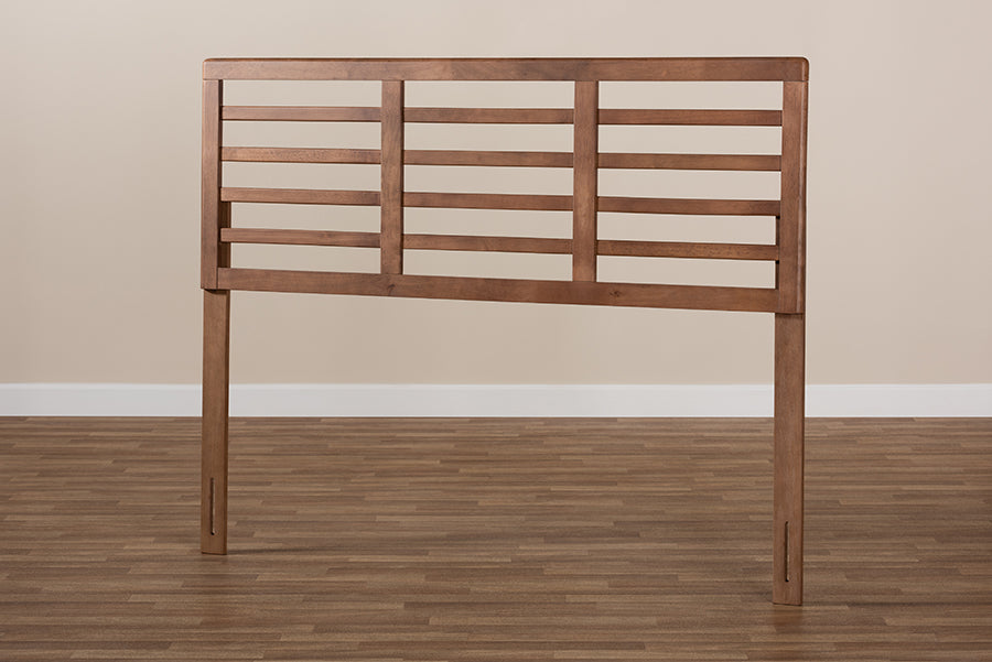 Baxton Studio Salome Mid-Century Modern Walnut Brown Finished Wood Queen Size Open Slat Headboard