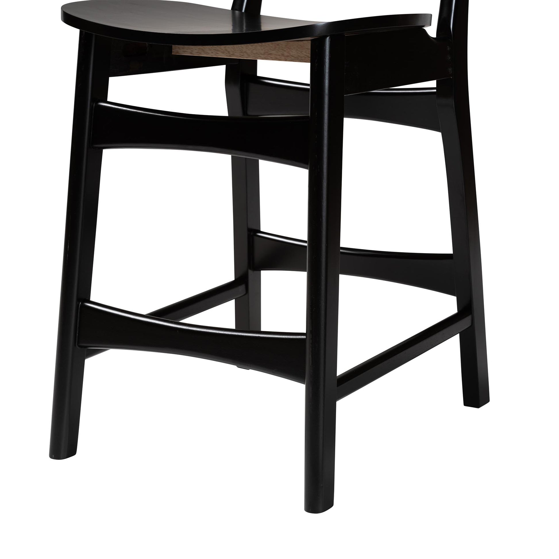 Baxton Studio Tafari Mid-Century Modern Dark Brown Finished Wood and Rattan 2-Piece Counter Stool Set