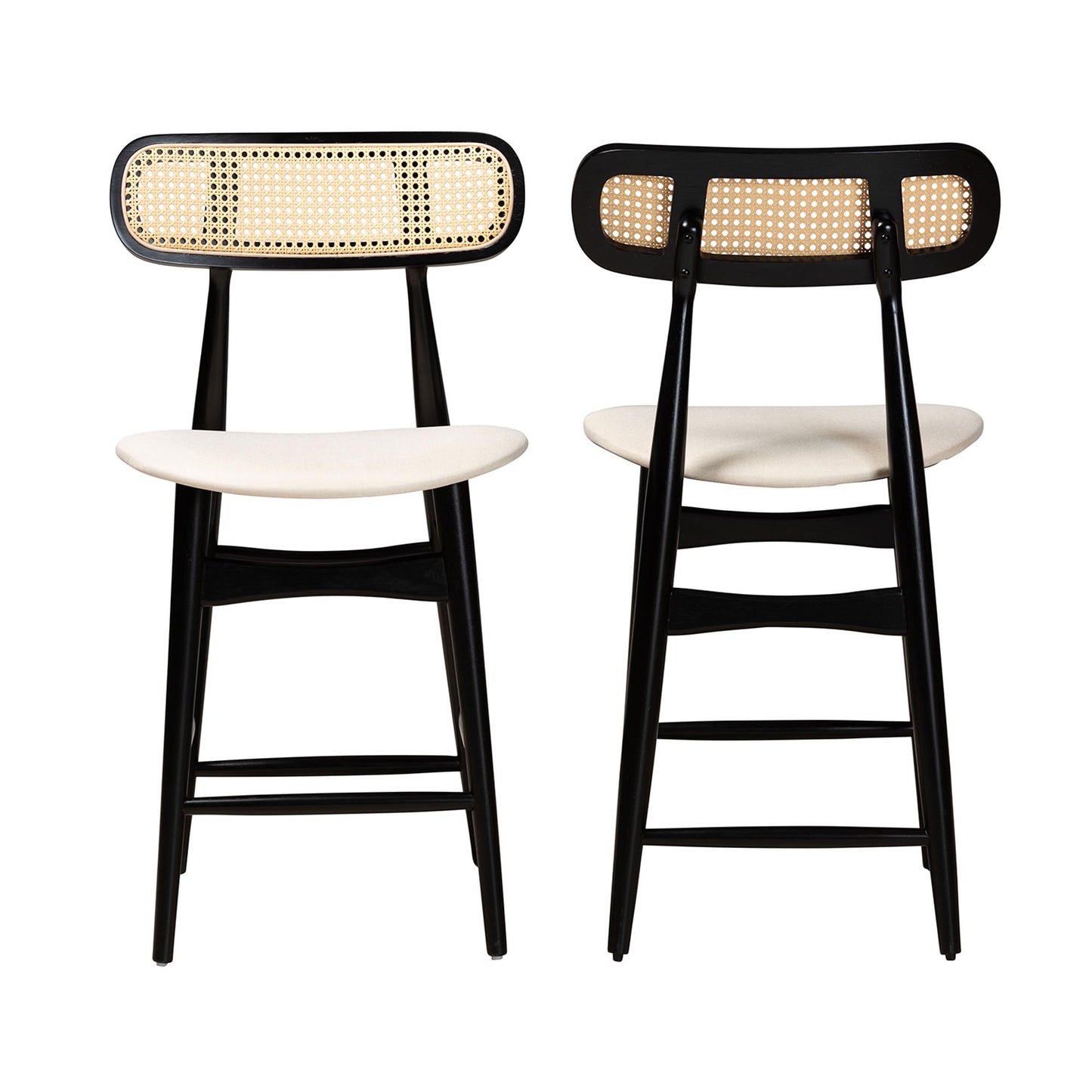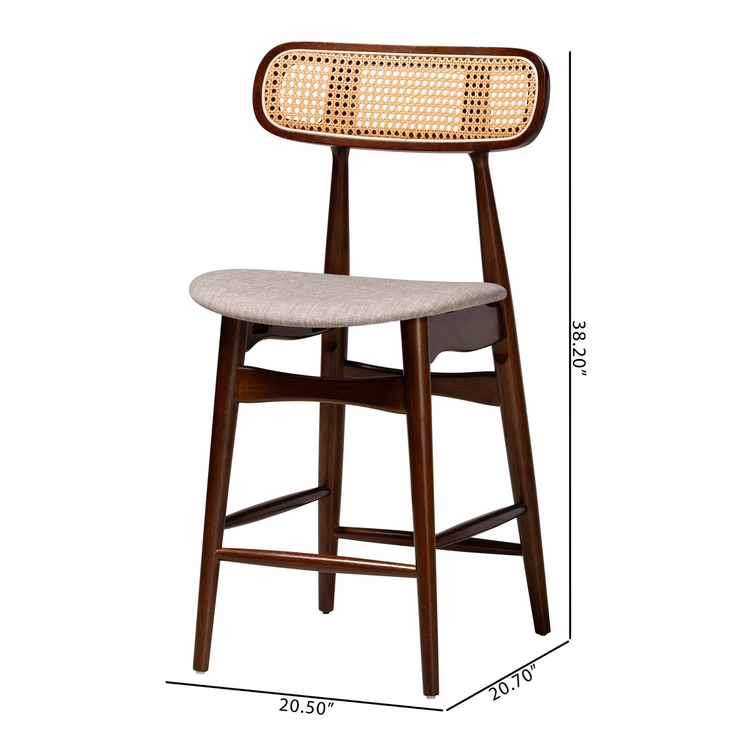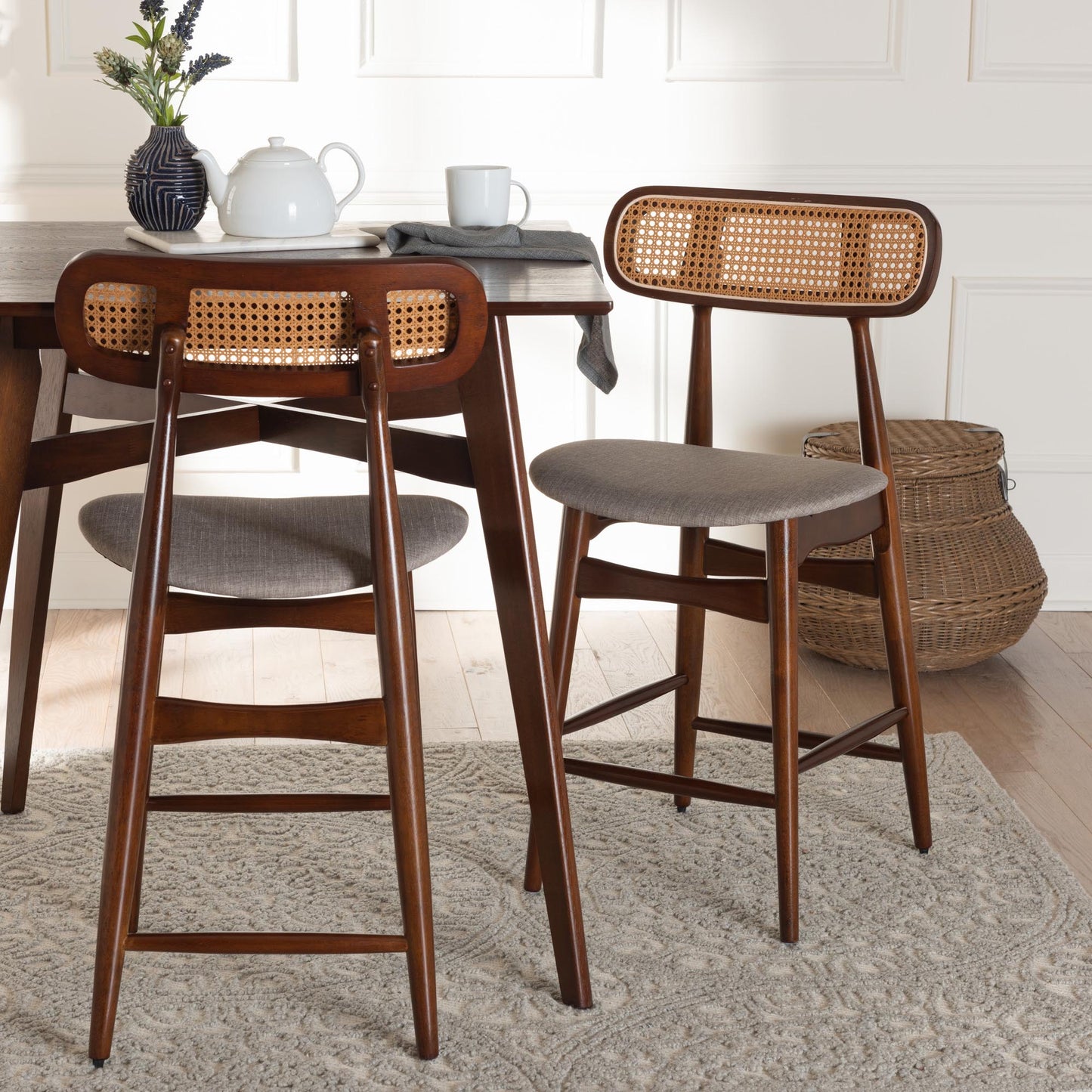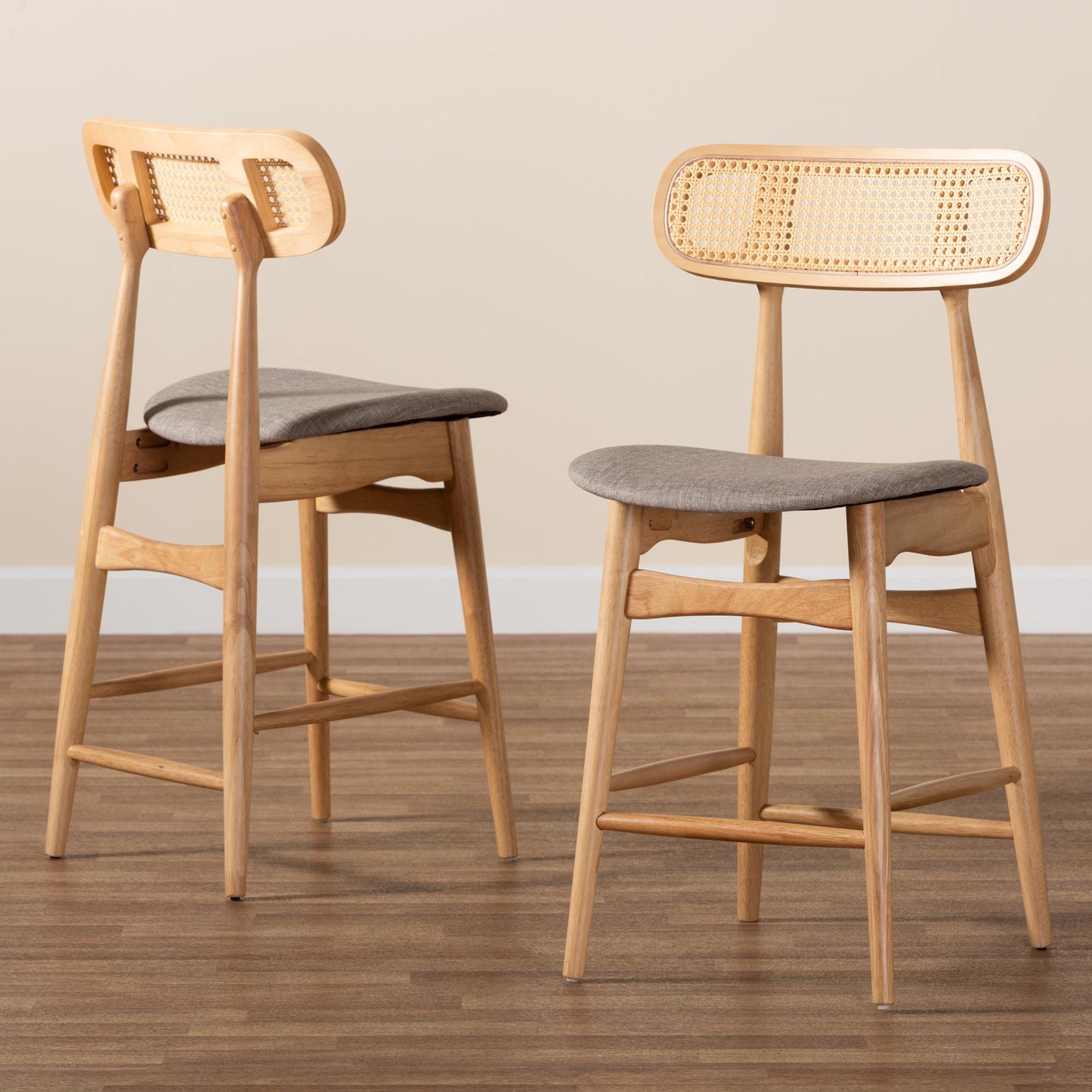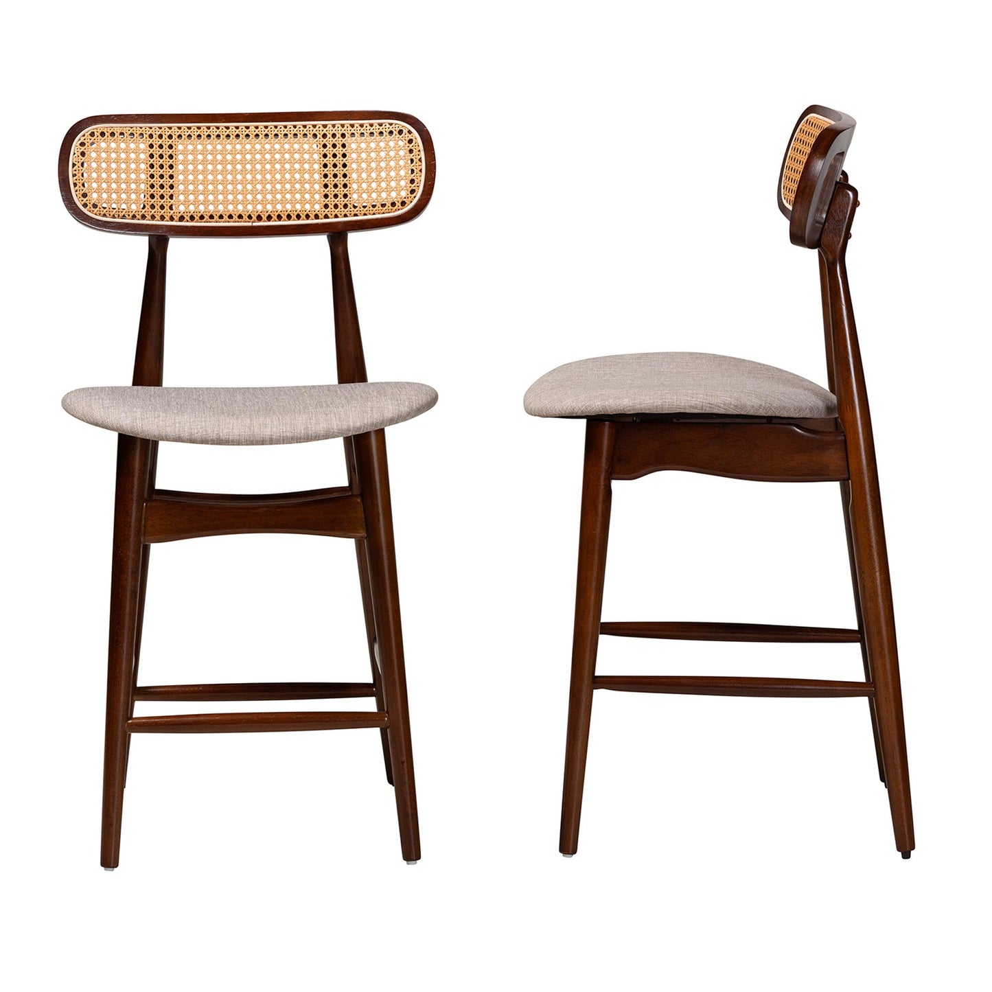 Baxton Studio Tarana Mid-Century Modern Grey Fabric and Walnut Brown Finished Wood 2-Piece Counter Stool Set