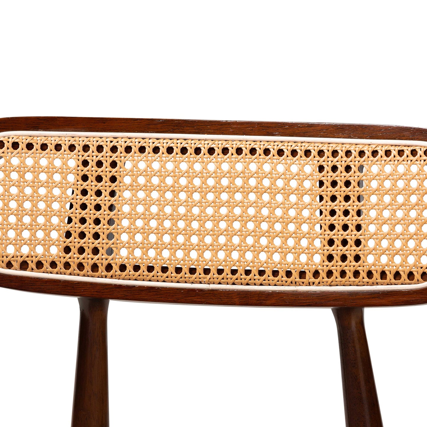 | Curved backrest woven with synthetic rattan |