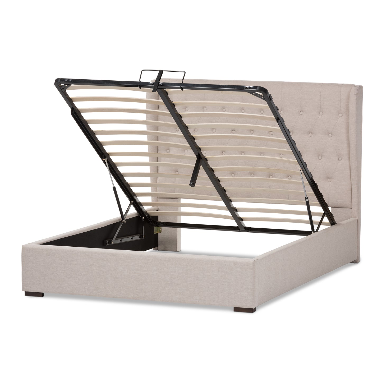 Baxton Studio Taylor Modern and Contemporary Light Beige Fabric Queen Size Gas-Lift Platform Bed