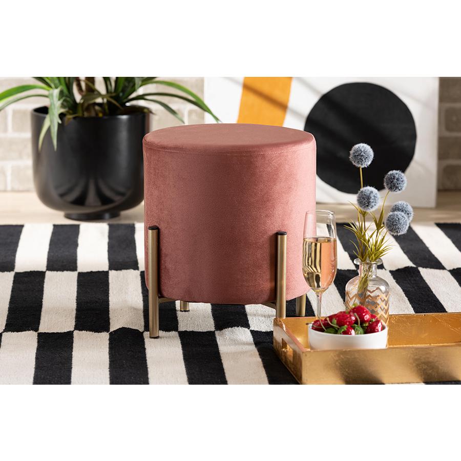 Baxton Studio Thurman Contemporary Glam and Luxe Pink Velvet Fabric Upholstered and Gold Finished Metal Ottoman