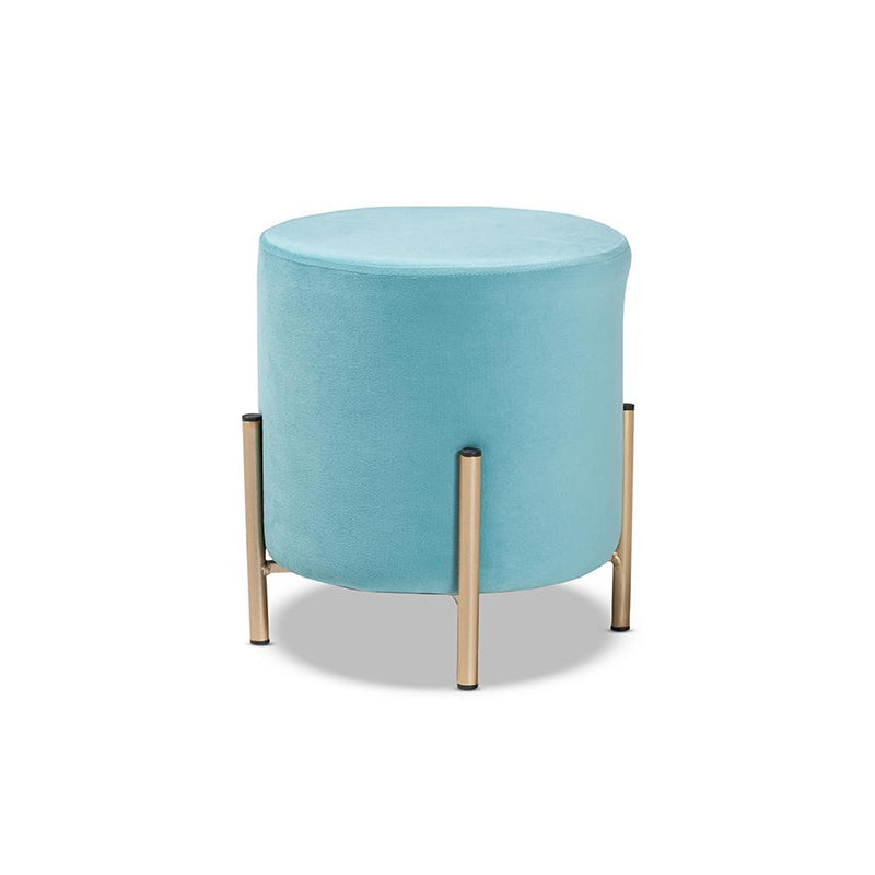 Baxton Studio Thurman Contemporary Glam and Luxe Sky Blue Velvet Fabric Upholstered and Gold Finished Metal Ottoman