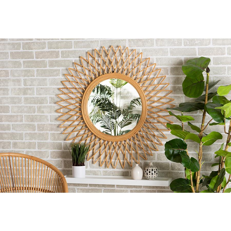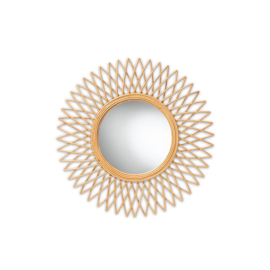 Baxton Studio Vera Modern Bohemian Natural Brown Rattan Accent Wall Mirror