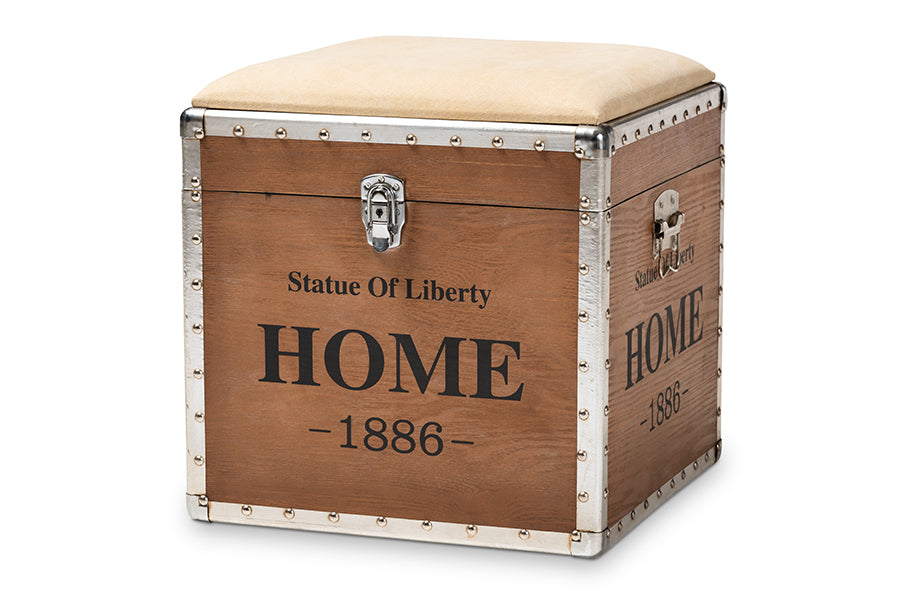 Baxton Studio Violetta Vintage Industrial Beige Fabric Upholstered Wood Storage Trunk Ottoman