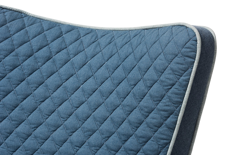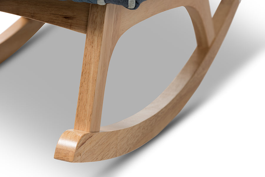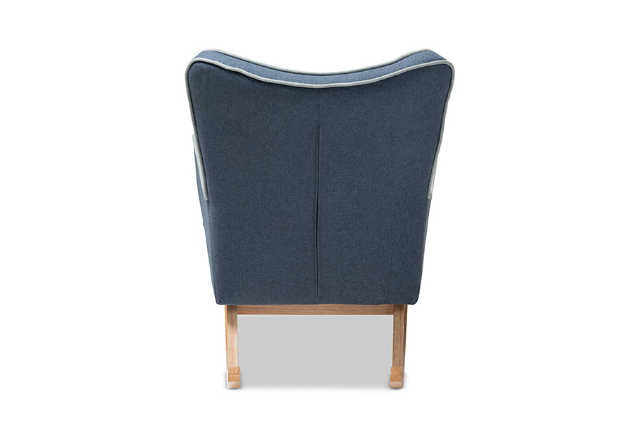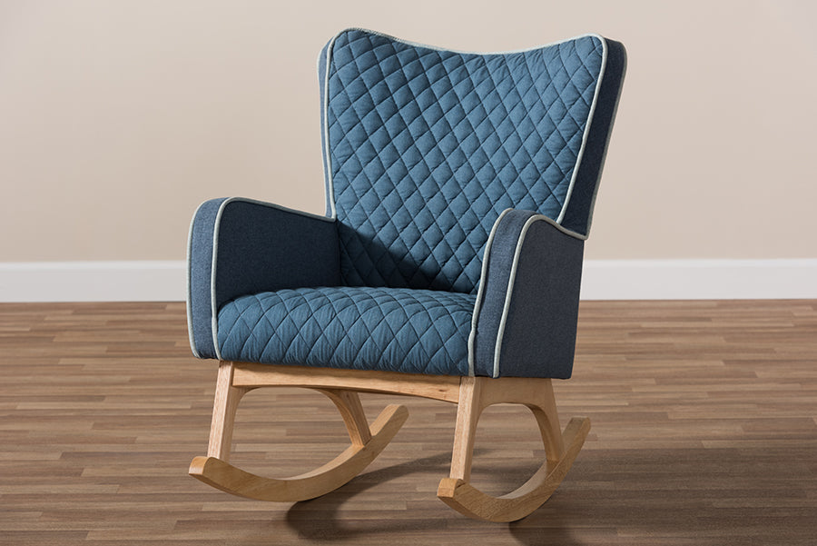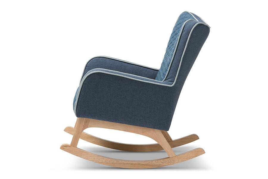 Baxton Studio Zoelle Mid-Century Modern Blue Fabric Upholstered Natural Finished Rocking Chair