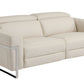 Beige Italian Leather USB Reclining Sofa With Silver Legs By Homeroots