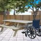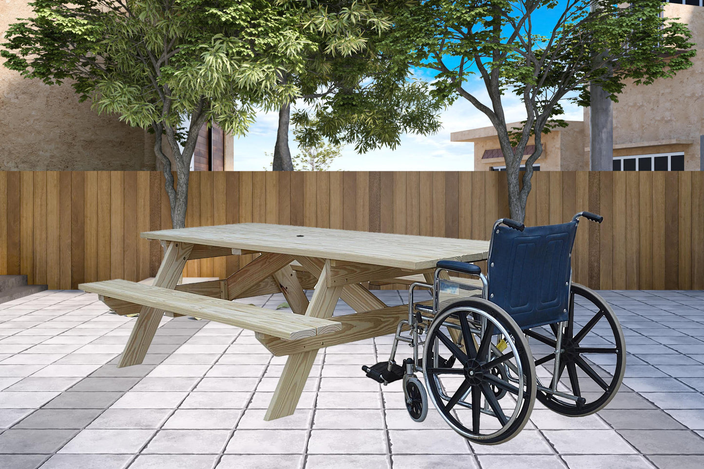 | 8' Park Style ADA Compliant Picnic Table with 2" Umbrella Hole and Attached Benches. Unfinished wood in its natural state. |