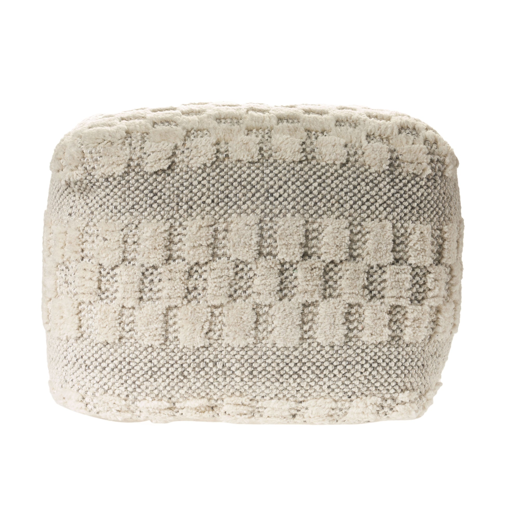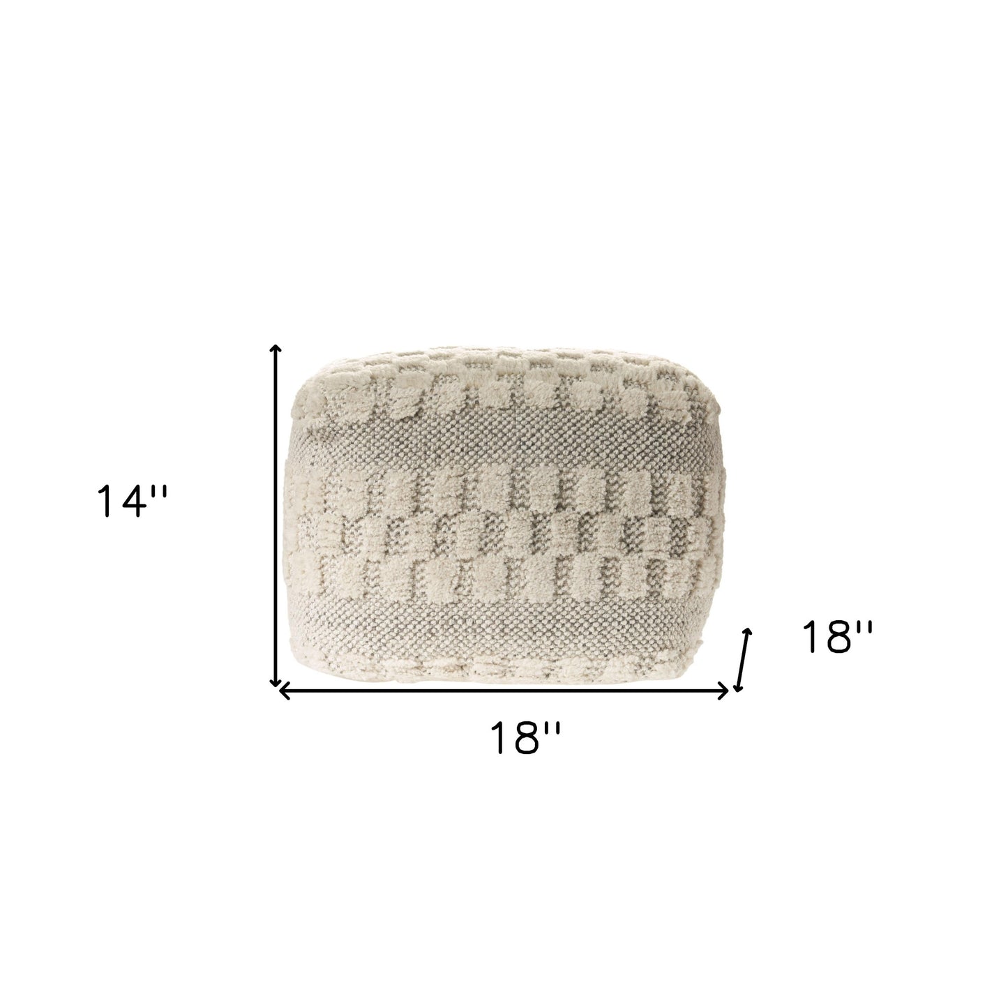 Introducing our 18-inch beige wool ottoman, the perfect addition to your space for ultimate relaxation. Crafted with the finest wool upholstery, this ottoman exudes both fashion and practicality. Designed in a sleek geometric pattern, it effortlessly complements any decor style. With its versatile pouff floor seating type, you can use it as an extra seat, a footrest, or even as a stylish accent piece. The 18-inch size offers ample space without overpowering your room. Immerse yourself in luxurious comfort as you unwind on this beige wool ottoman, a true embodiment of elegance and functionality. 14-inch H x 18-inch W x 18-inch D