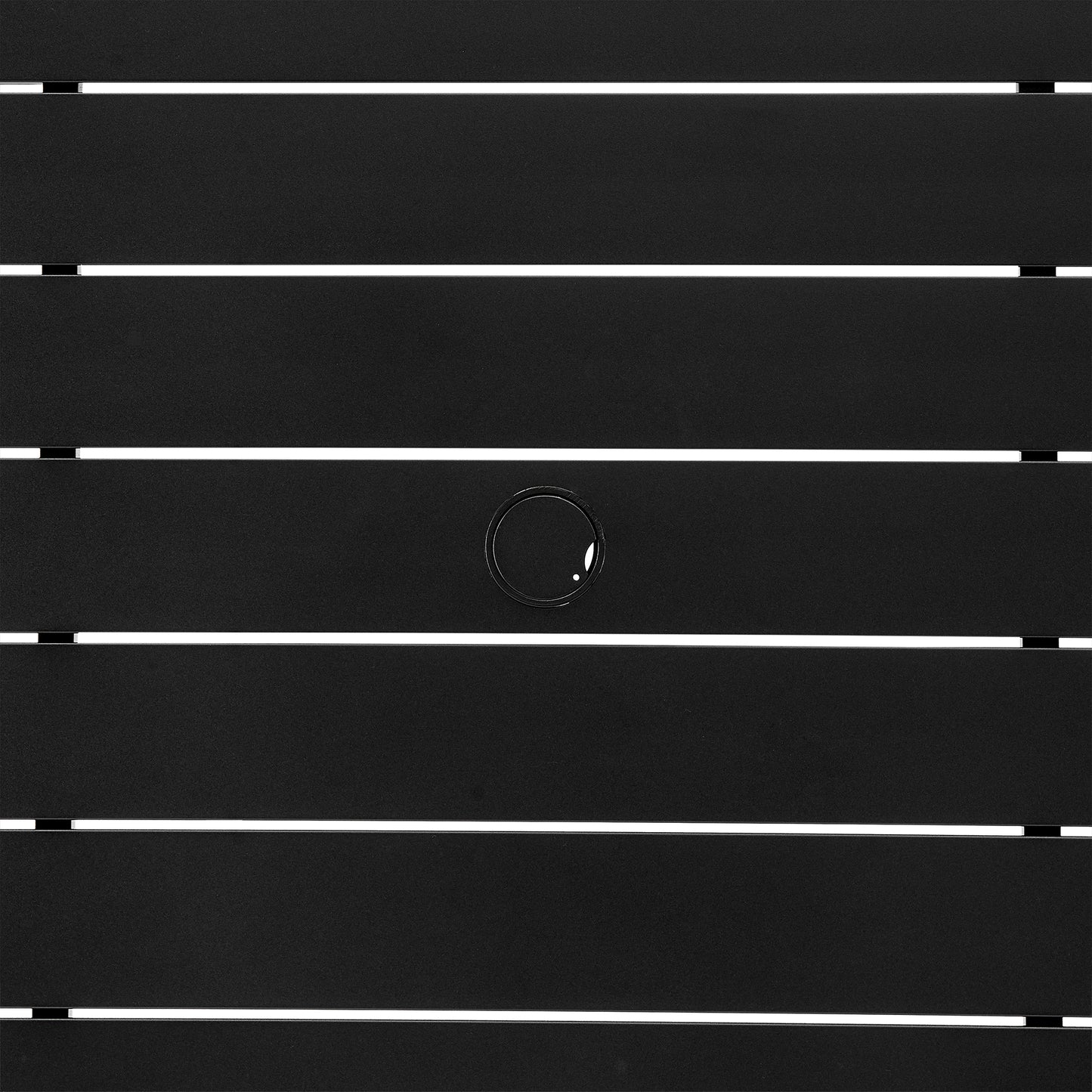 Enjoy your outdoor space to the fullest with the Beowulf outdoor dining table from Armen Living. Defined by clean lines and refined silhouette, the patio dining table befits any setting. Crafted to perfection, our Beowulf outdoor dining table can accommodate up to 8 seats. Aluminum is a light and rust proof material and can be moved from your backyard, to your screened in porch, to your garden with ease! The slat style tabletop helps elements to easily pass through which adds to its durability, while the umbrella hole adds to its convenience. The surface of the table rests upon sleek, tapered legs to deliver timeless elegance and aesthetic to this outdoor furniture piece. The chic aluminum table and frame feature a multi-layer powder coating for effective protection from the weather, everyday wear, and tear. The dining table makes a sleek statement with the smooth and sturdy finish of black powder-coated aluminum, and it can easily incorporate to your existing décor, making it the ideal piece of outdoor patio furniture.