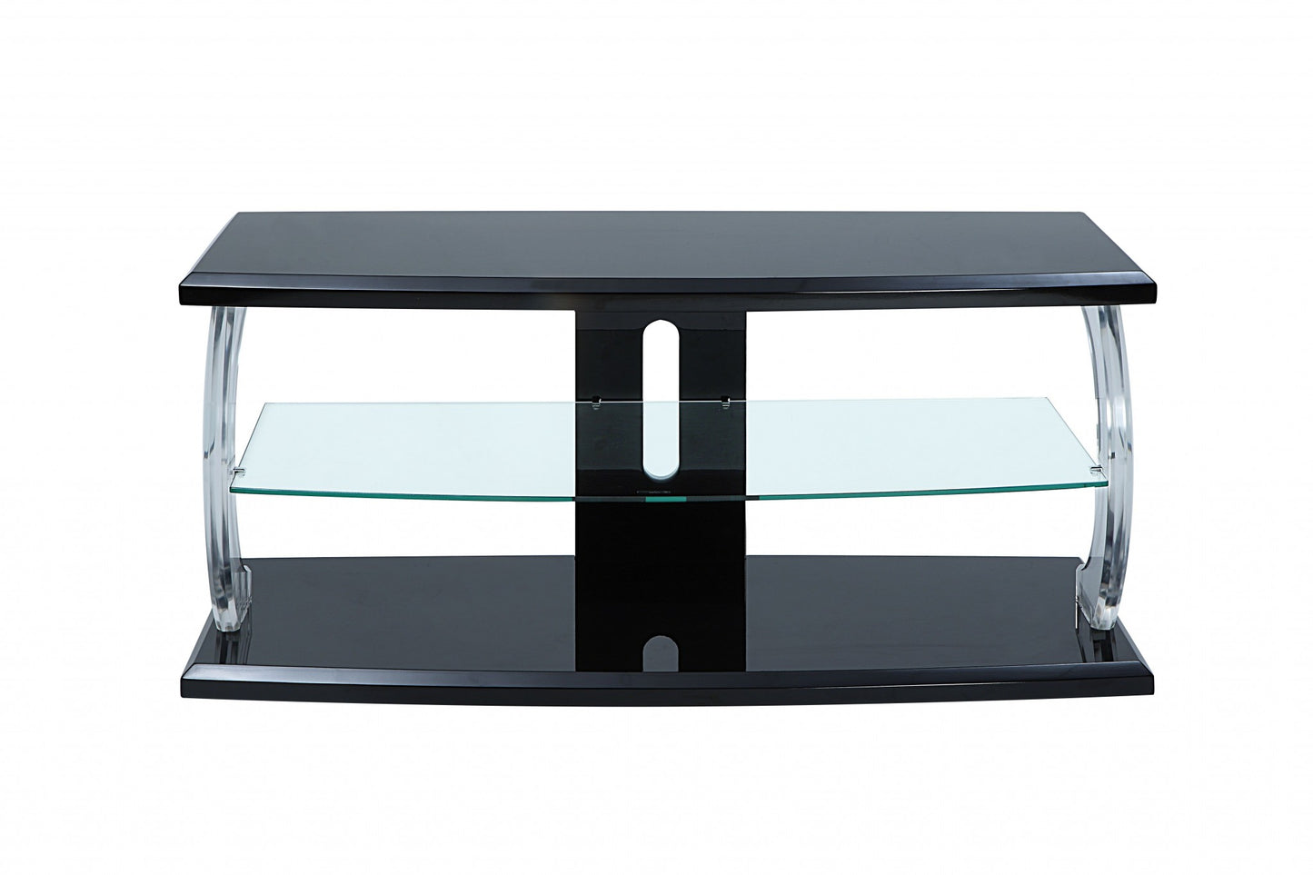 Black Clear Glass Wood Glass Veneer (Melamine) TV Stand (LED) By Homeroots
