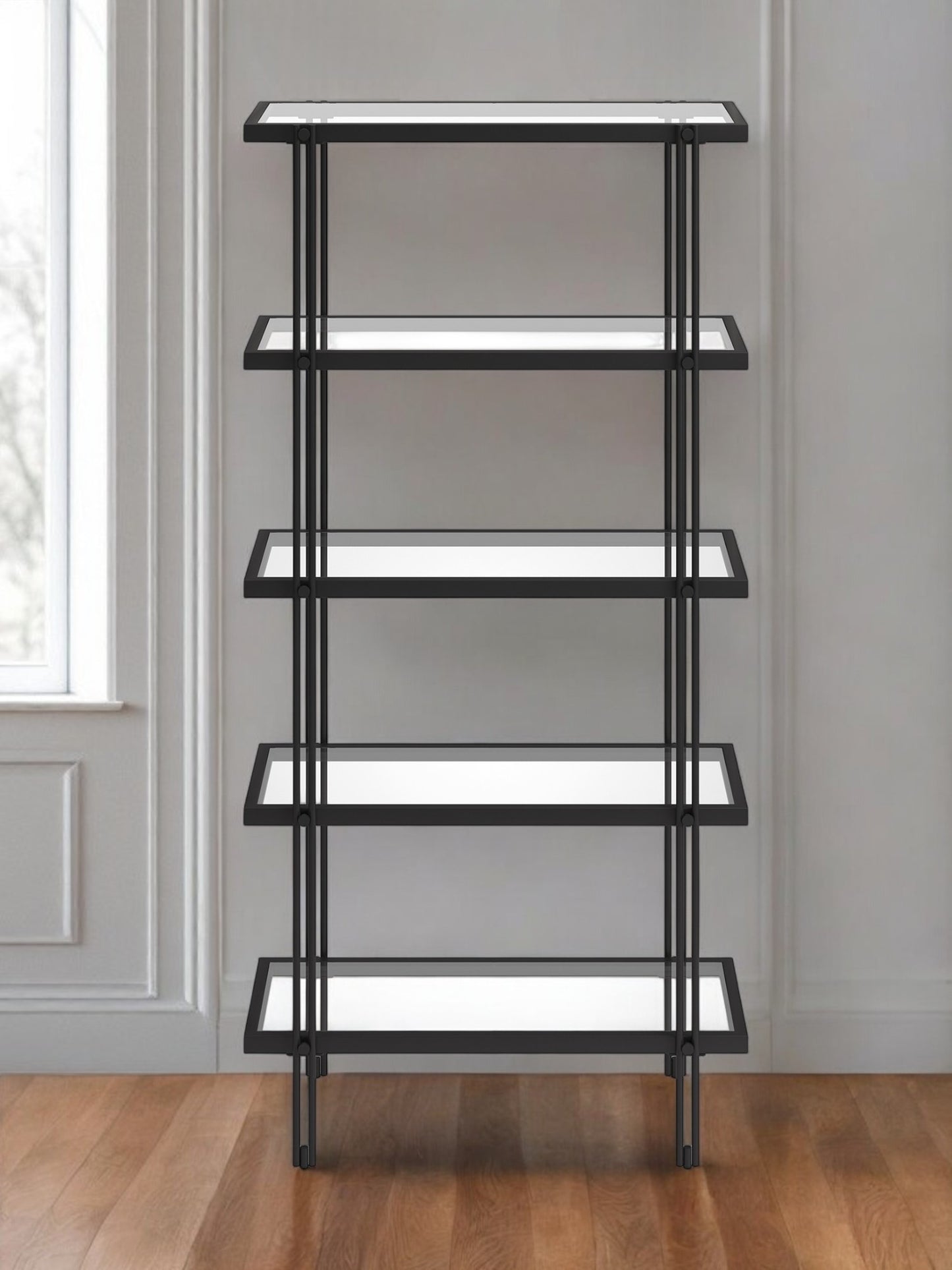 Black Metal And Glass Five Tier Standard Bookcase By Homeroots