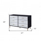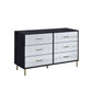 Enhance your room into a visually delightful and highly functional space with this 47" black silver and gold six drawer double dresser. Designed for you to stand in front of and get ready, this horizontal double dresser has a convenient and wide top area for your getting ready needs and supplies. Loaded with capacity, this piece is equipped with six easy open drawers for practical and good looking clothing storage. A textured faux croc design on the front drawers gives this piece a great visual. This is high quality furniture made from high grade manufactured wood. 29" H x 47" W x 16" D