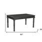 Add handsome, fashionable design to your dining space with this 60" black solid wood dining table. This table features quality construction from solid wood and a sleek monotone color scheme with black as the main color on both the top and the base. The purposefully distressed finish gives this table an authentically rustic feel. This dining table seats 6 people comfortably. Complete your kitchen or dining room with this well made and stylish table. This eye-catching dining table is ready for you to enjoy breakfast for one or entertain your guests. 30" H x 60" W x 36" D