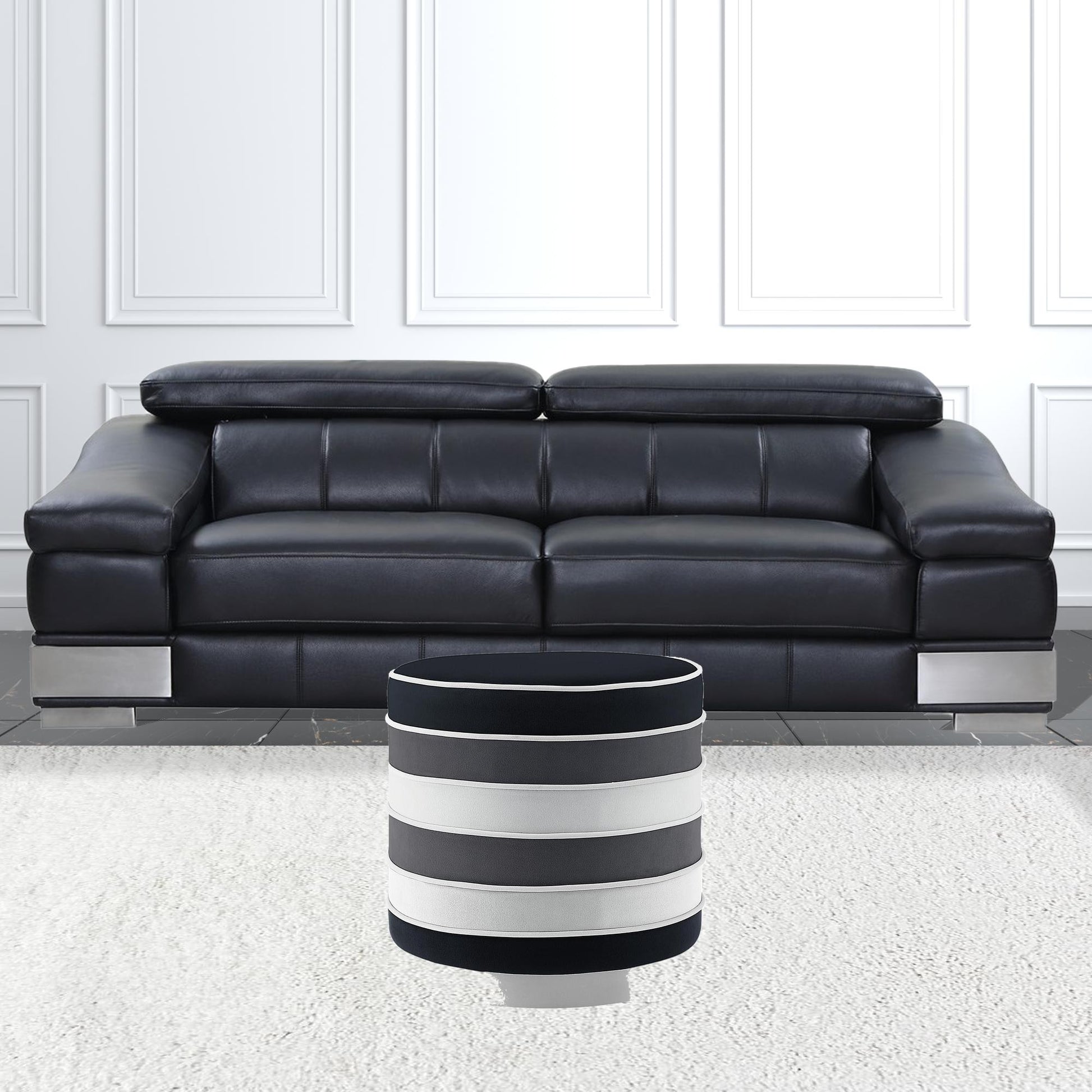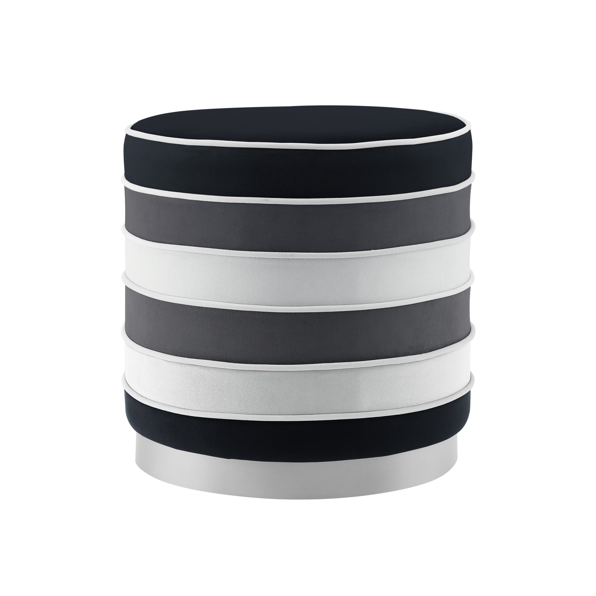 Black Velvet And Silver Round Striped Ottoman By Homeroots