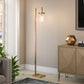 Add a bright anchor to your room with this 67" brass reading floor lamp with clear transparent glass drum shade. The base of this lamp is made of brass metal. The brass base coloring infuses a warm and rich tone to your space. The coloration of the brass lamp base creates a fashionable marriage with the the clear glass drum shaped shade. Next to your desk or favorite chair this single base task/reading lamp is designed to make your work or activities easier with concentrated light in just the space you need it. The light that this lamp throws is soft and warm to elevate the look of most any space in your home. Bring some lite and good vibes into your space with this updated and stylishly designed lamp. 67" H x 11" W x 9" D