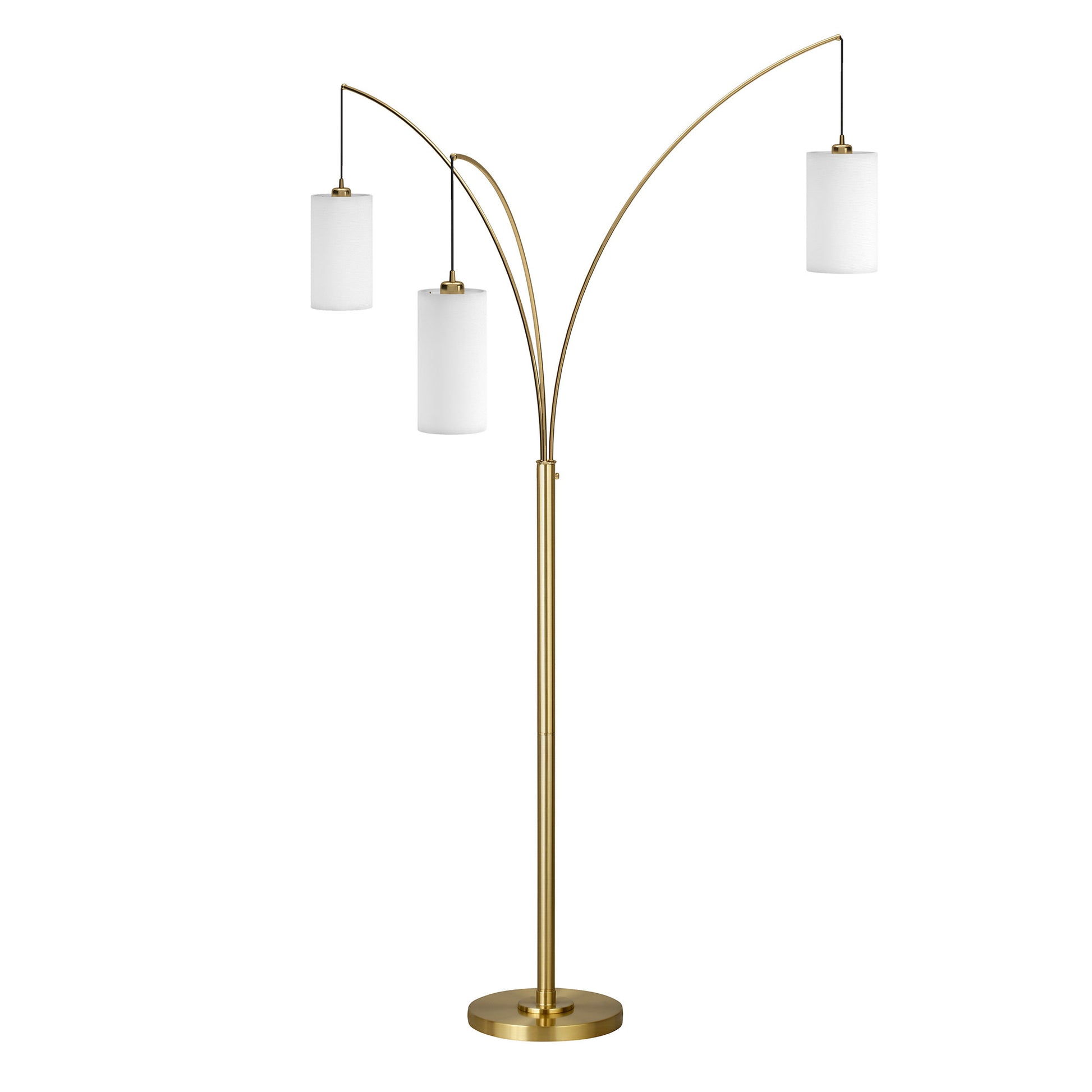 Embrace the good life with this hard working and stylish 83" brass three light tree floor lamp with white frosted glass drum shade. A gorgeous brass metal base bring just the right amount of pizzazz to this fabulous lamp. The brass base coloring infuses a warm and rich tone to your space. The lamp shade itself has a drum shape and is made of fabric, which makes it a perfect choice. Creative and cool, this tree shaped lamp features a straight pole that branches out into multiple arms to maximize the light in your space. The light that this lamp throws is soft and warm to elevate the look of most any space in your home. It is perfect for virtually any decor. 83" H x 19" W x 19" D