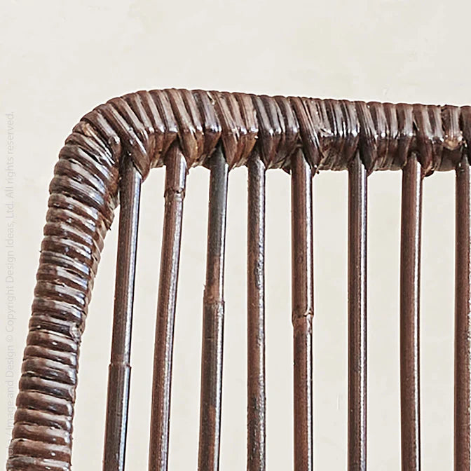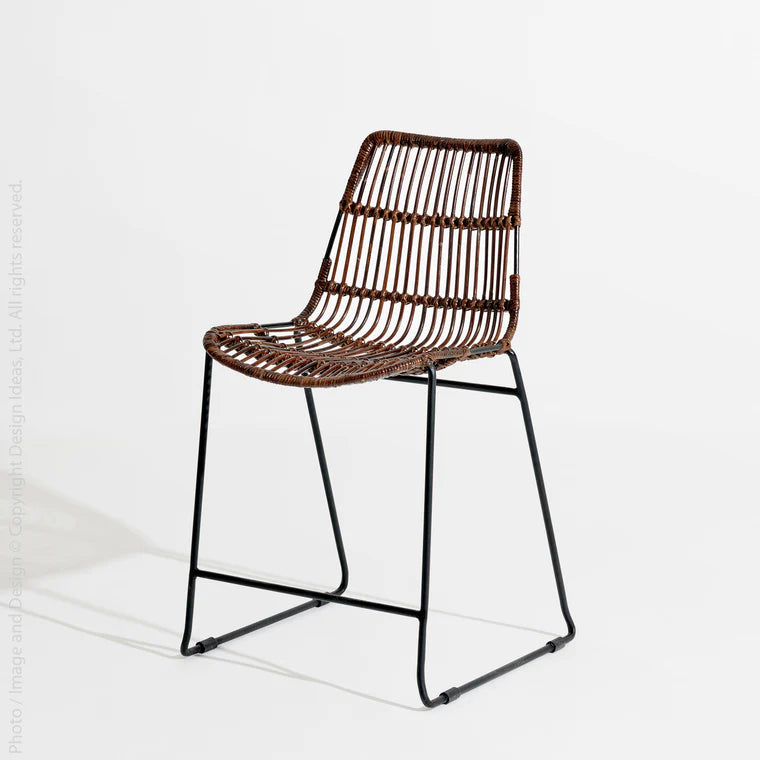 This counter stool is crafted with a welded iron frame and a woven rattan seat. The rattan is sustainably sourced and the stool is handmade in Indonesia. The stool is ideal for use at a counter or bar and has a back for added comfort. The natural materials and simple design make this stool a great addition to any space.