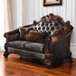 | Traditional and classically styled love seat with ornate old world style scrollwork details. |