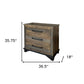 Add a versatile storage solution to your space with this Brown and Gray solid wood three drawer chest. Made with real wood that is given a weathered and distressed finish this modern piece can be a great small dresser, a nightstand, or act as a great accent cabinet in your hallway or living room. The space saving design makes it a great choice for space challenged spaces or small walls within your room. 35.75-inch H x 36.5-inch W x 18-inch D