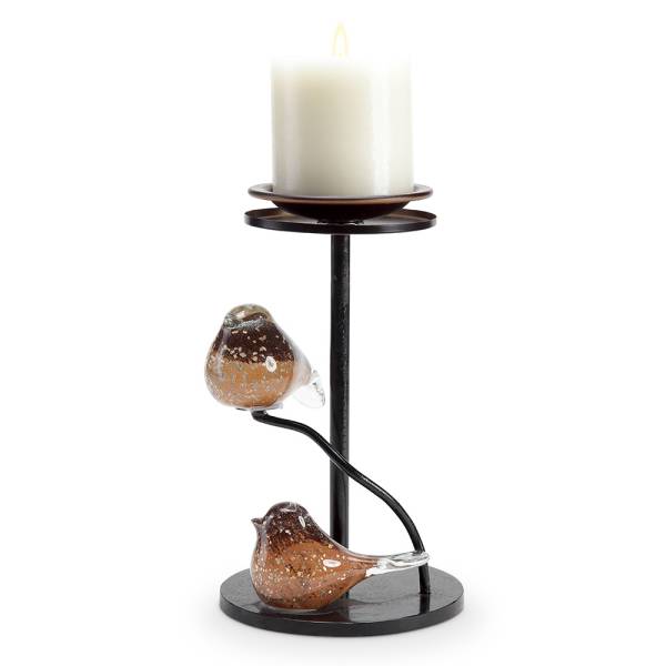 Brown Glass Bird Pair Pillar Candle Holders By SPI Home