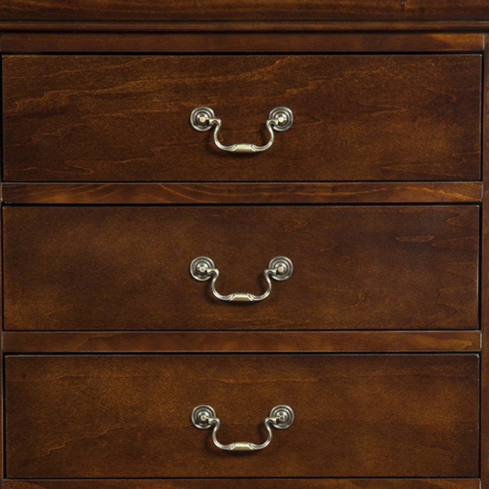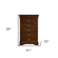 Make your room functional and visually enticing with this masterful 32" brown solid wood five drawer standard chest. This chest of drawers is tall and lean making it an ideal choice for smaller rooms or as an additional storage option in larger rooms. Equipped with five easy open drawers for practical and good looking clothing storage. This dresser is built to last from high quality solid wood,. 47.75" H x 31.5" W x 17.5" D