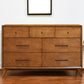 | Mid-century dresser made from solid mahogany wood with metal handles for a stylish touch. |
