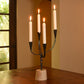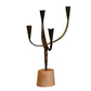 Wrought iron is expertly cut and forged to create taper holders that seem to balance inexplicably on wood bases.